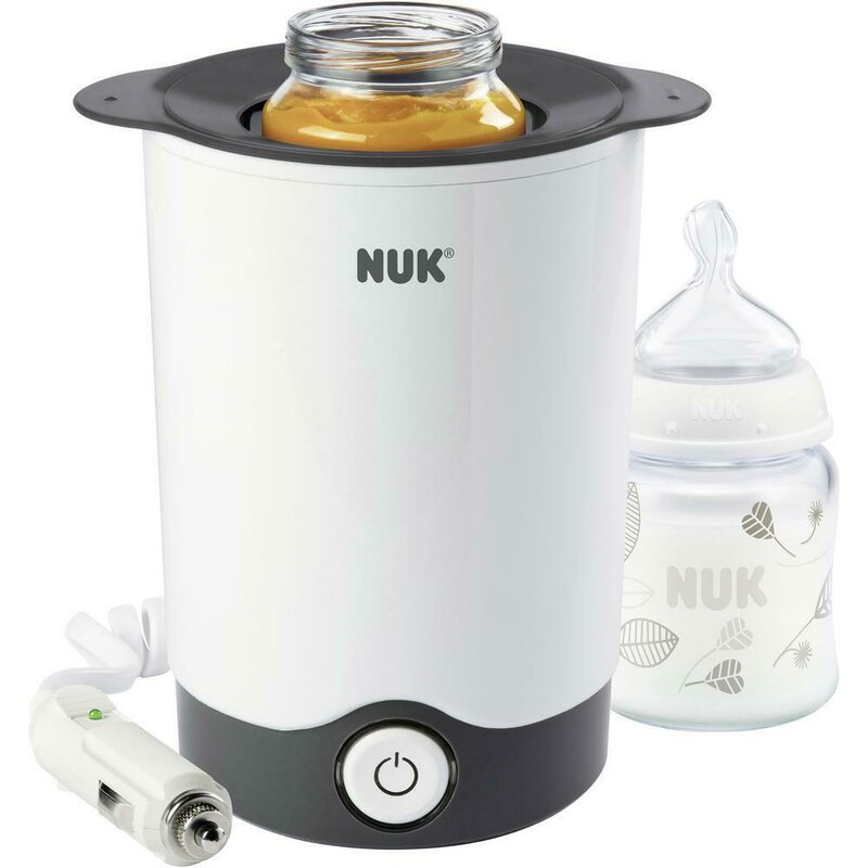Incalzitor biberoane, Nuk, Thermo Express Plus, Electric, Timp rapid de 90 secunde, Capacitate 120 ml in sticla de 240 ml, Convenabil si practic, 12,5x12,5x18 cm, White