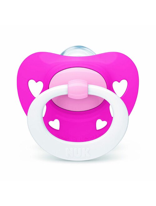 Suzeta ortodontica copii, Nuk, Classic Signature, Tetina plata, Gat subtire pentru dezvoltare sanatoasa, Cutie reutilizabila, Fara BPA, 18-36 luni, Roz