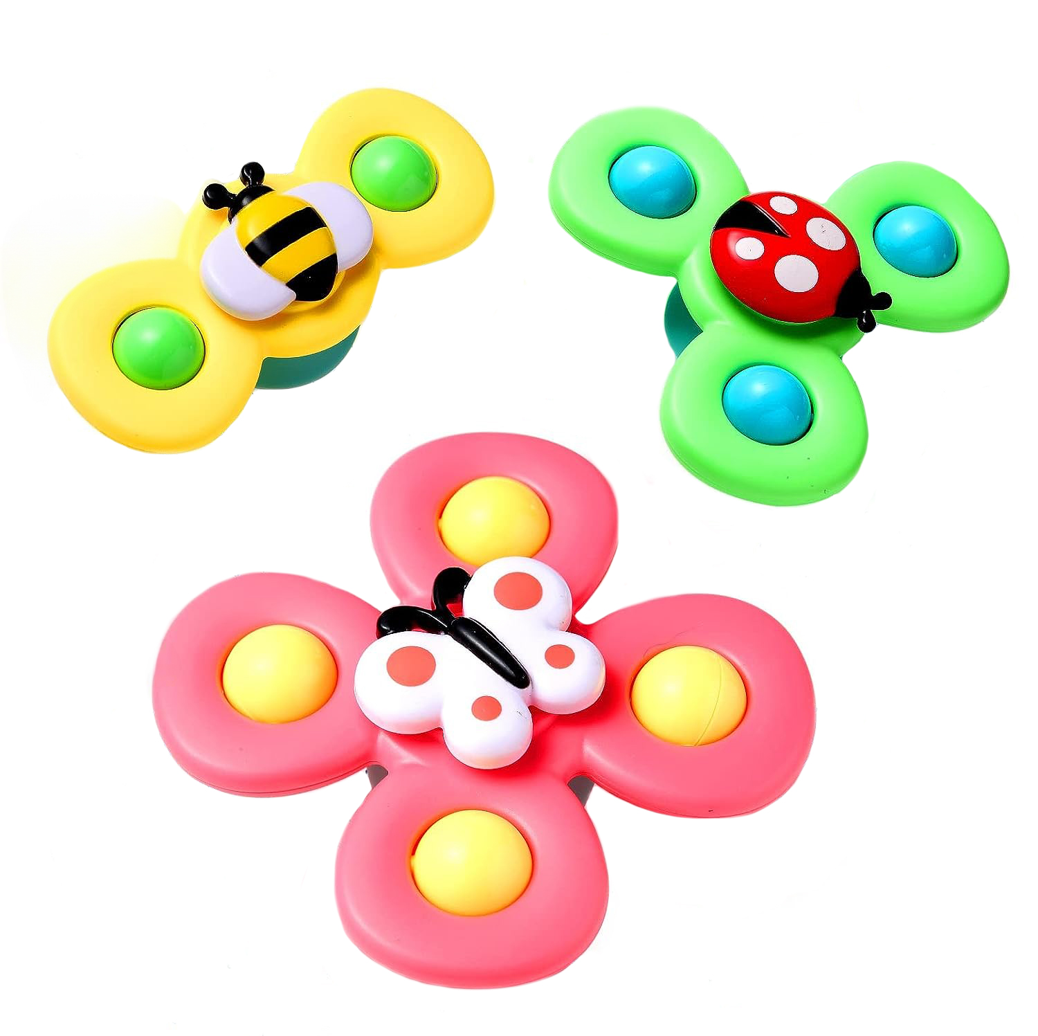 Jucarie interactiva pentru bebelusi Engros , educationala, ideala pentru joaca, baie, calatorit, luat masa, dentitie, dezvoltarea abilitatilor motrice, atentiei, spinner cu ventuza, bilute rotative, set 3 piese buburuza, fluture, albinuta- Pitikot®