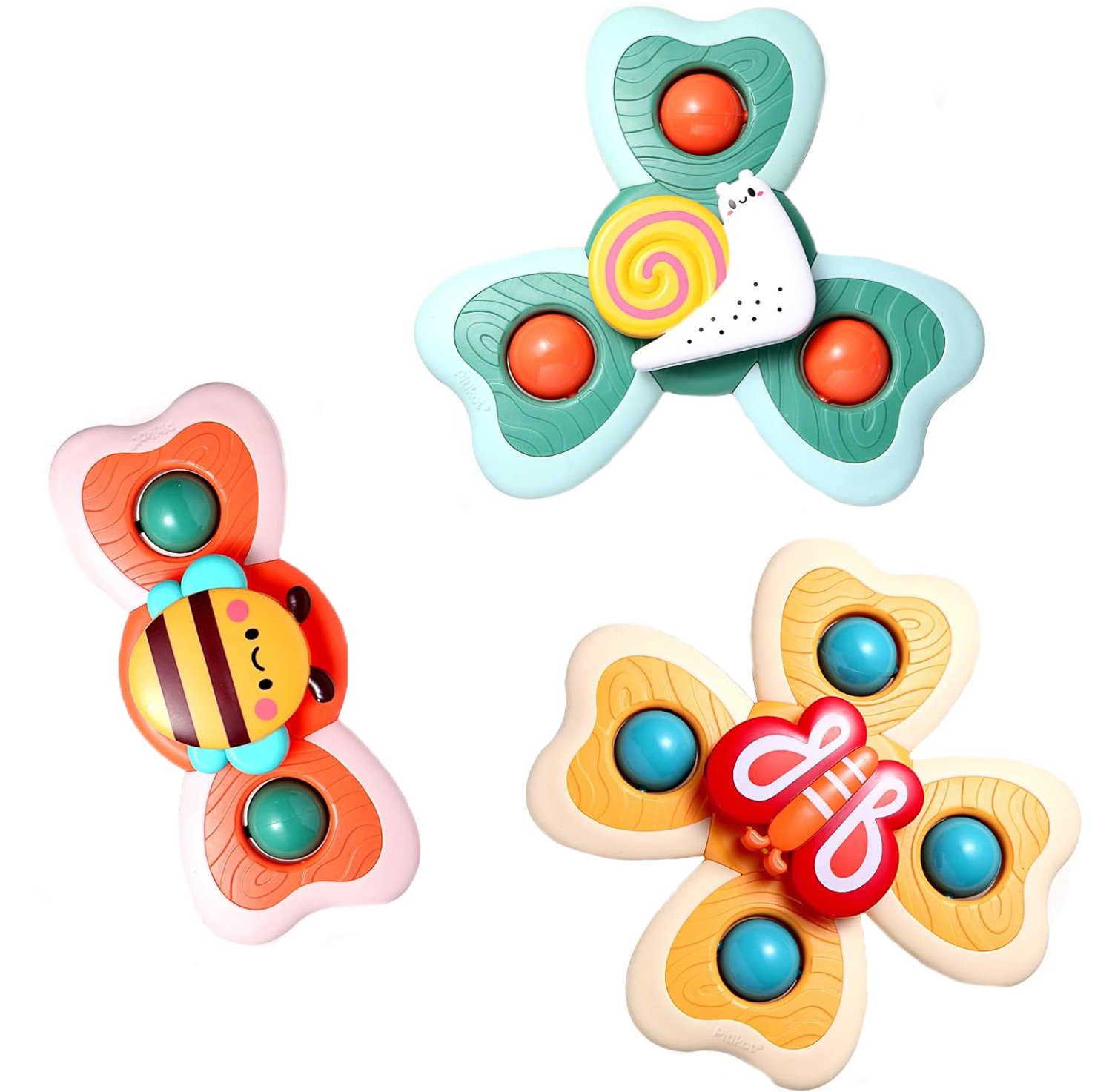 Jucarie interactiva pentru bebelusi Engros , educationala, ideala pentru joaca, baie, calatorit, luat masa, dentitie, dezvoltarea abilitatilor motrice, atentiei, spinner cu ventuza, bilute rotative, set 3 piese melc, fluture, albinuta - Pitikot®