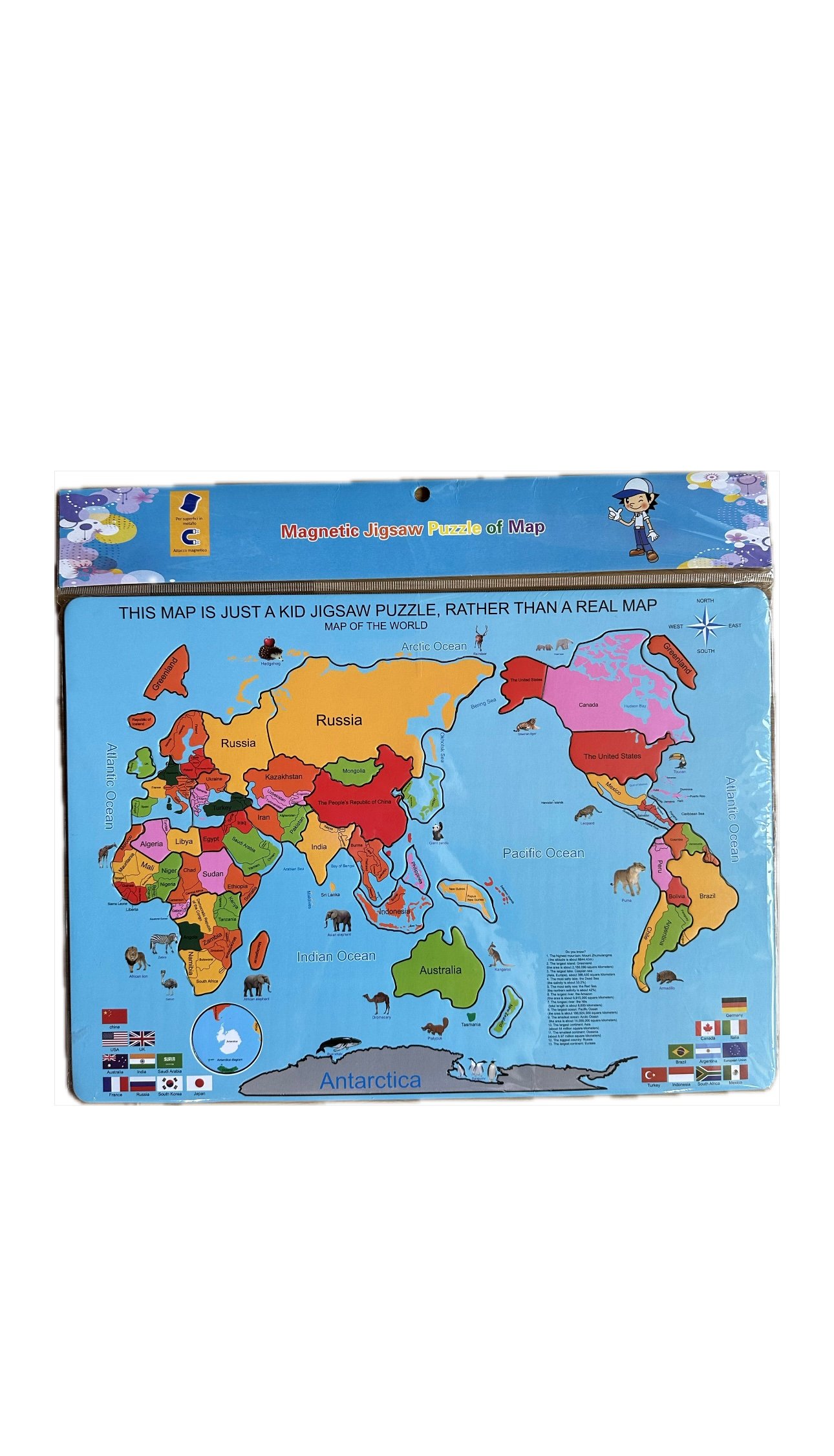 Puzzle magnetic cu harta lumii si animale Engros, joc educativ