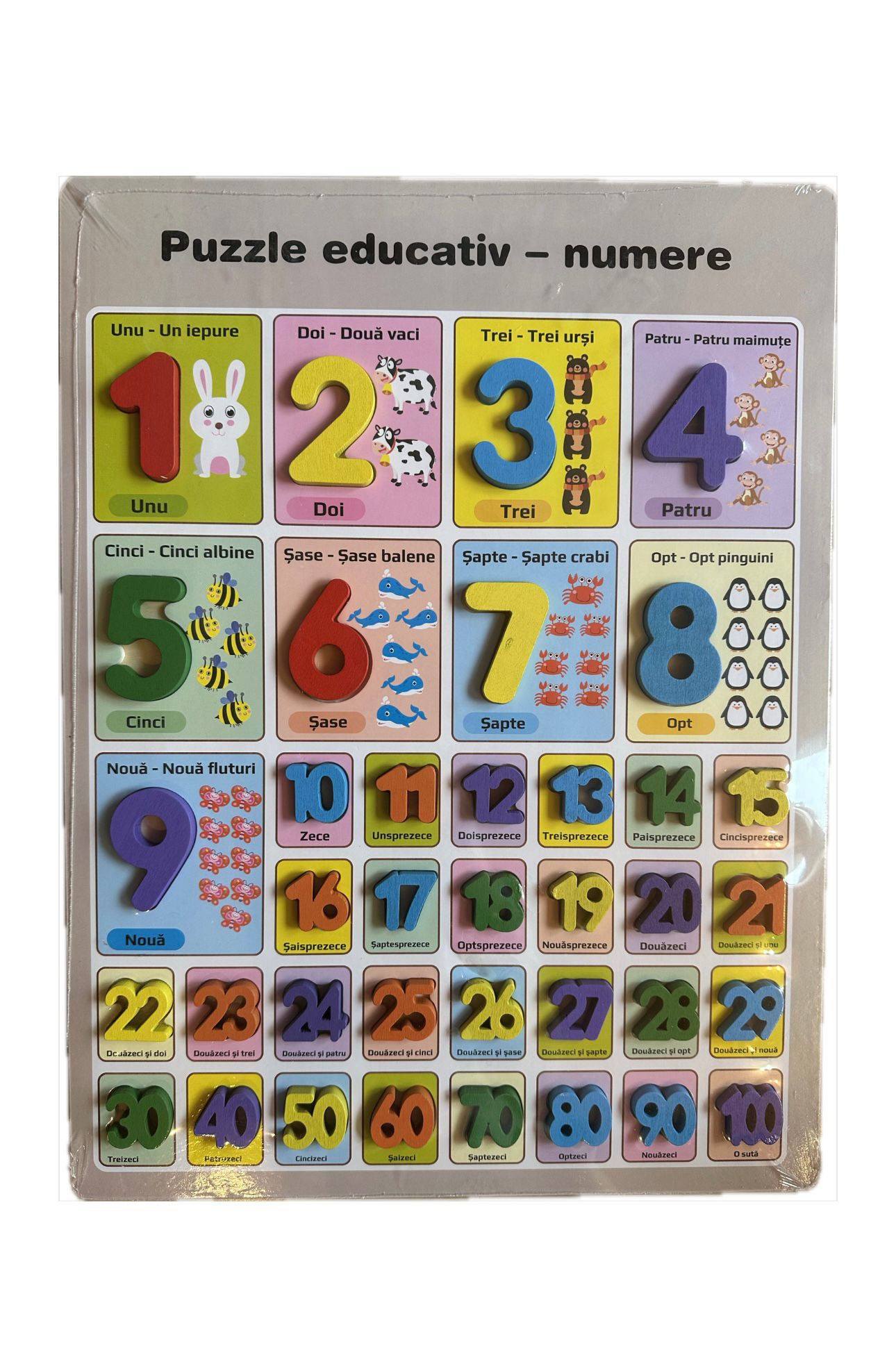 Puzzle din lemn Engross cu 37 de piese, tematica numere si simboluri, dimensiune 30x41x0.05 CM