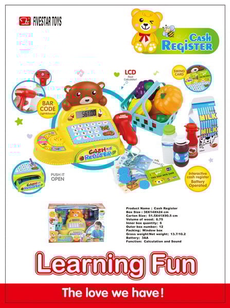 Jucarie casa de marcat cu accesorii market, engros, calculator si sunete, 38x24x14 cm