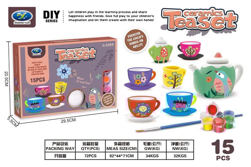 Set creativ pentu pictat un set de ceai, engros, 15 piese, 29,5x5,5x20,5 cm