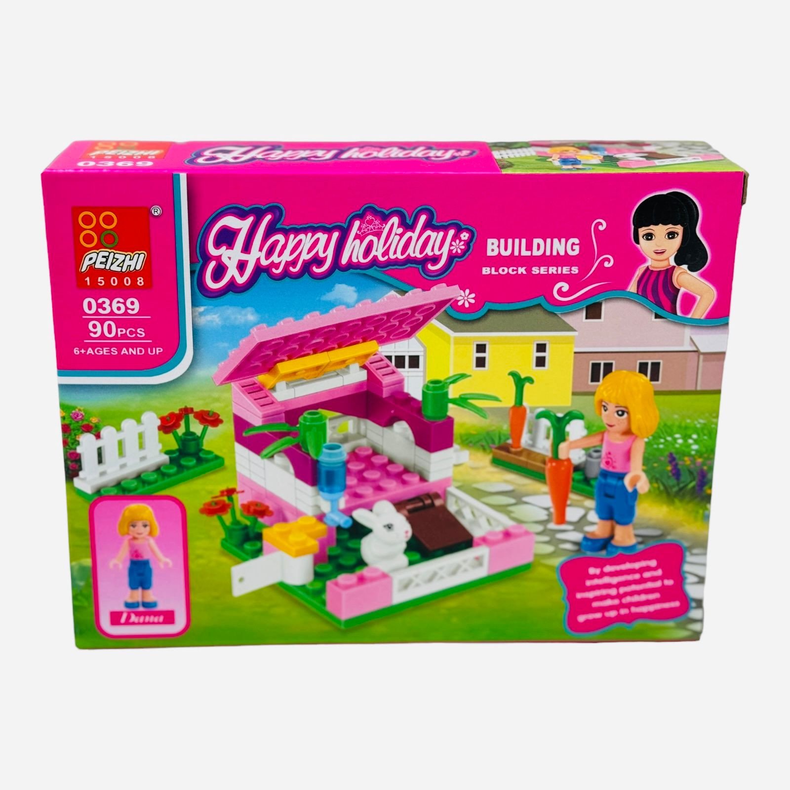 Joc de Constructie pentru fetite, Happy Holiday, Iepurasi, 90pcs, 18.5×14cm, +6ani, Engros