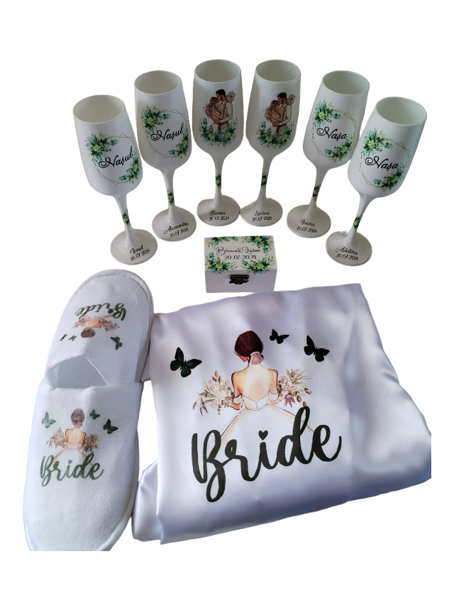 Set personalizat Engros, pentru mireasa, halat + papuci