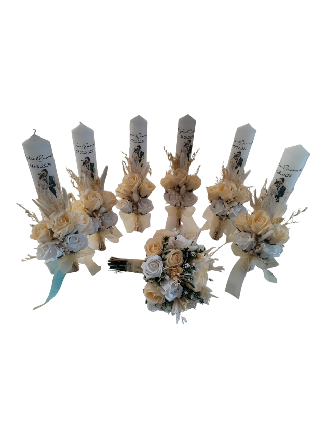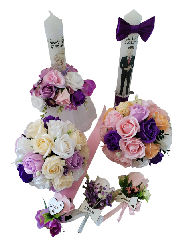 Lumanari Engros pentru cununie + buchet mireasa + buchet nasa