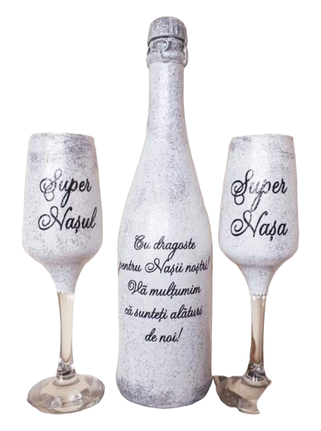 Cadou personalizat Engros, sampanie + pahare, pentru nasi