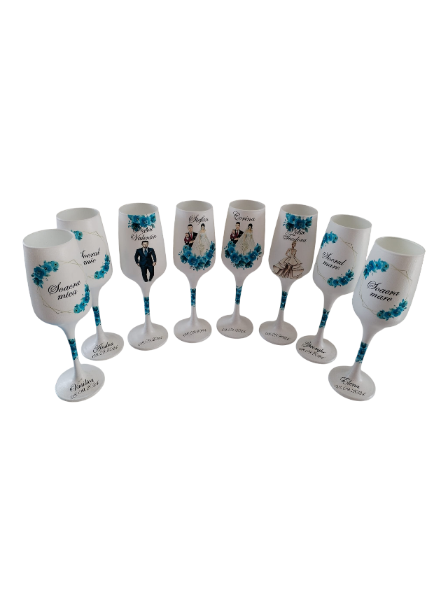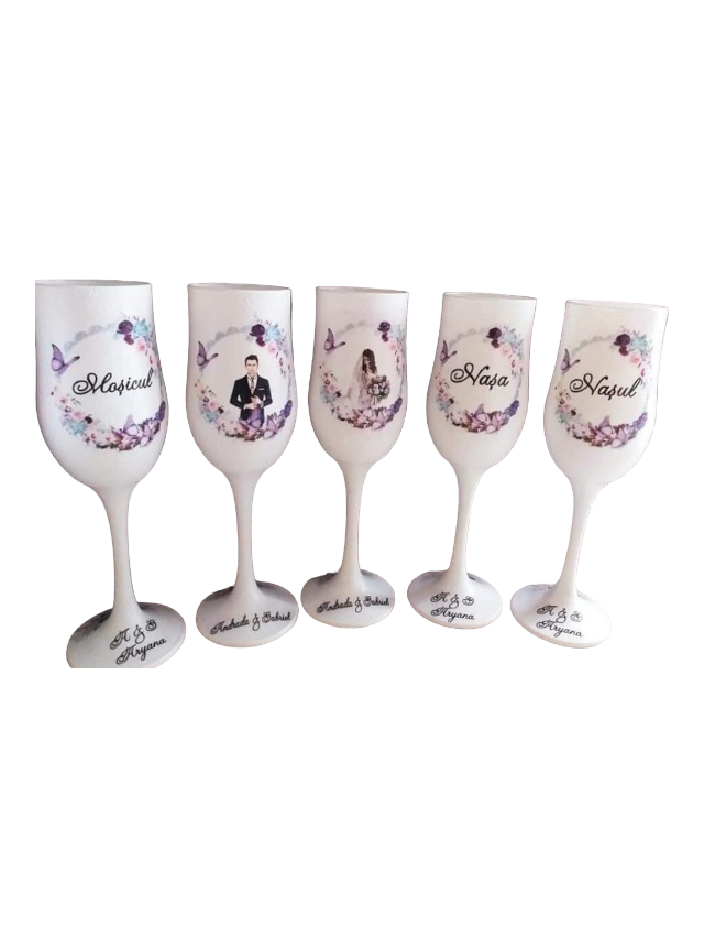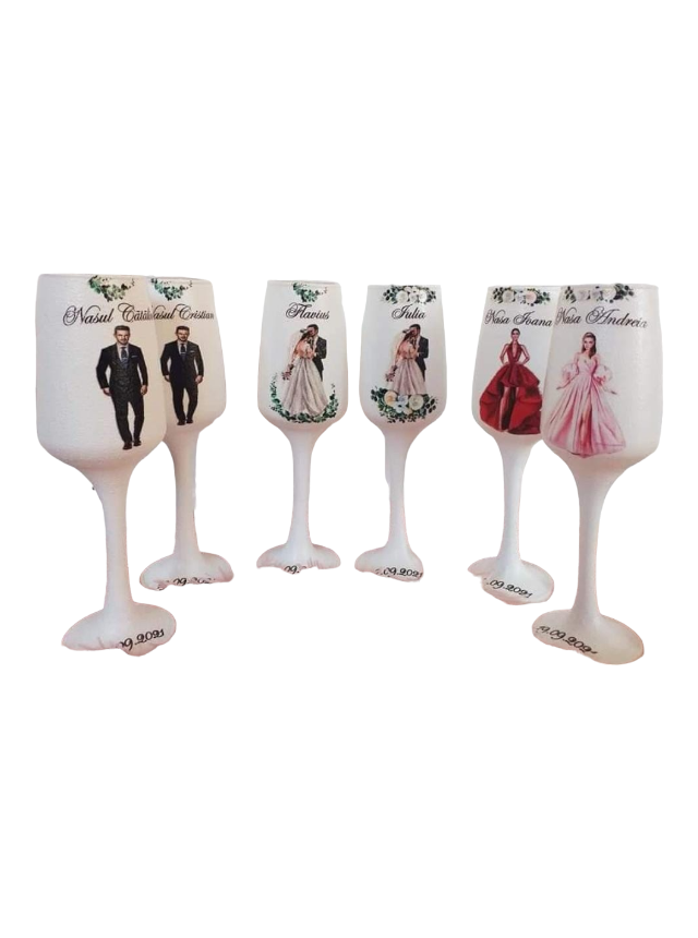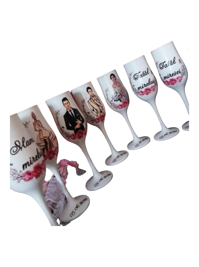 Pahare personalizate Engros pentru nunta, set miri + nasi + socrii