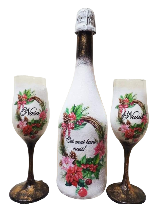 Cadou De CRACIUN personalizat Engros, sampanie + pahare, pentru nasi