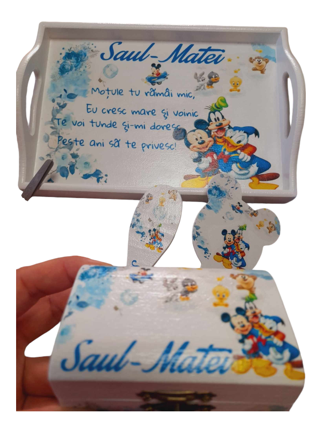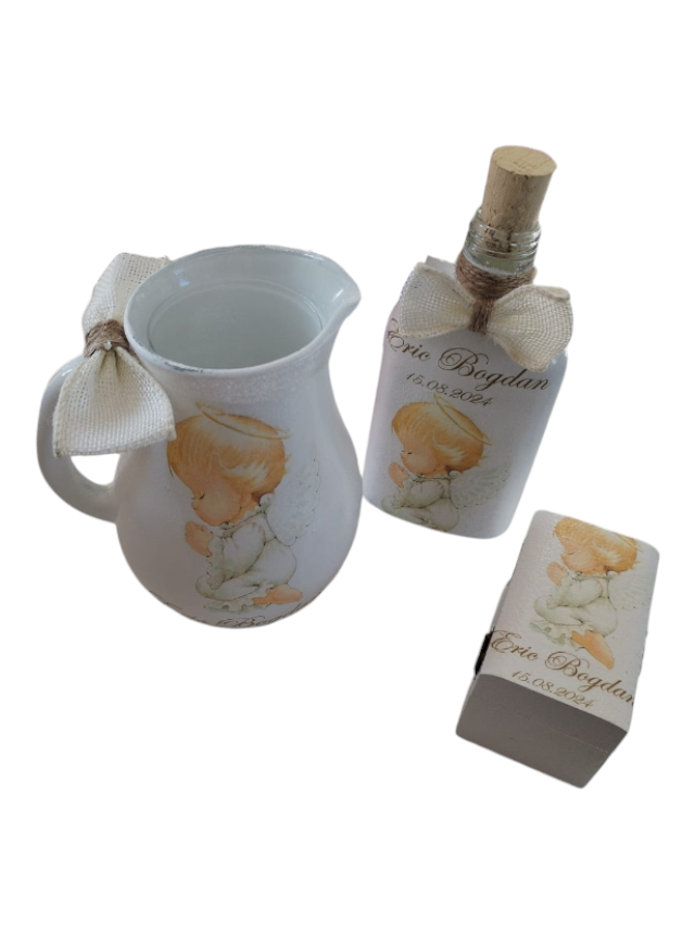 Trusou personalizat Engros, pentru botez, 8 piese, in cutie carton
