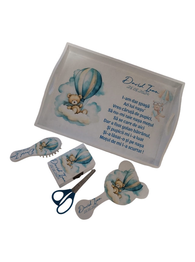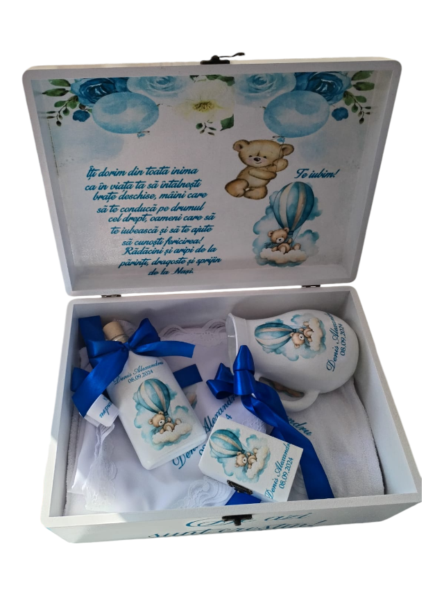 Trusou personalizat Engros, pentru botez, 7 piese, in cutie carton
