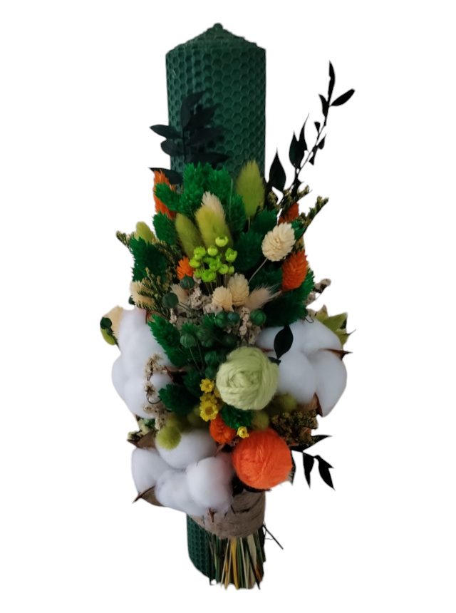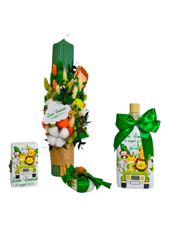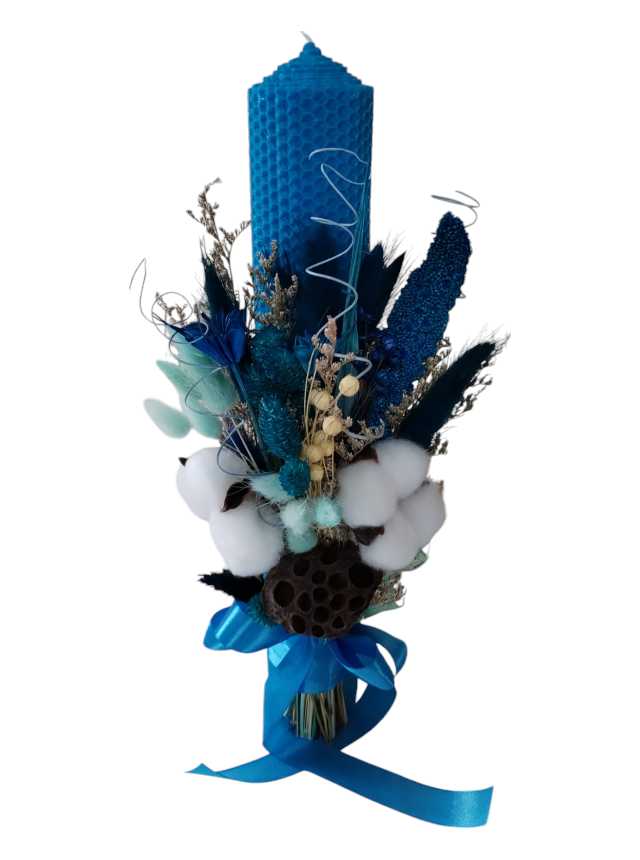 Lumanare personalizata Engros pentru botez, cu flori uscate