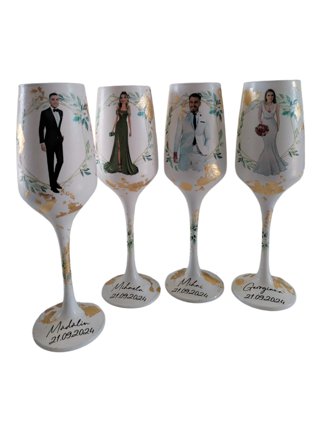 Pahare personalizate Engros pentru nunta, set miri + nasi + parinti