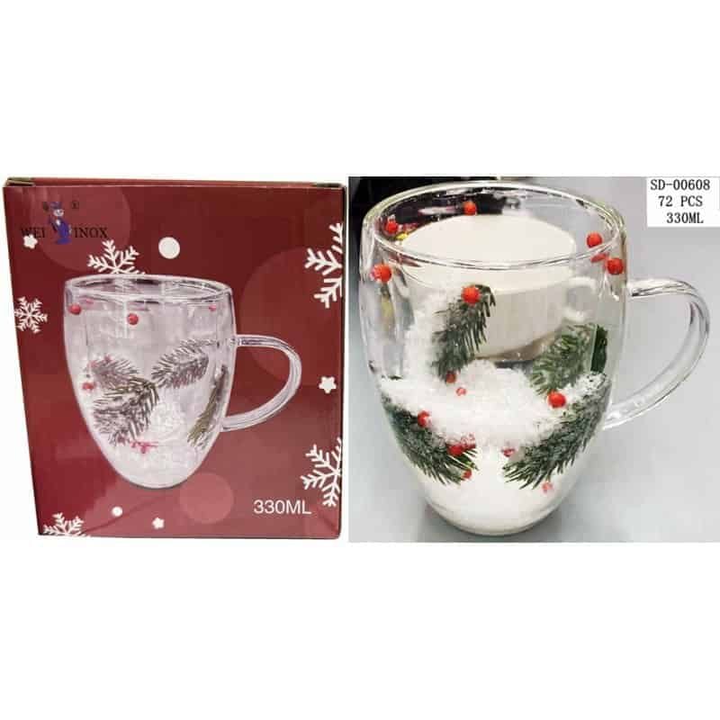 CANA CU PERETE DUBLU PENTRU CRACIUN 330ML, STICLA+PVC ENGROS