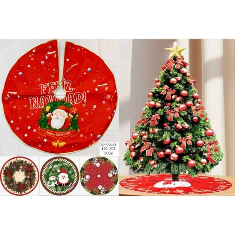 Sacoșă cadouri Crăciun 45×40 cm – model Moș Crăciun cu brad și daruri, material rezistent, ideală pentru ambalarea cadourilor mari,En-gros