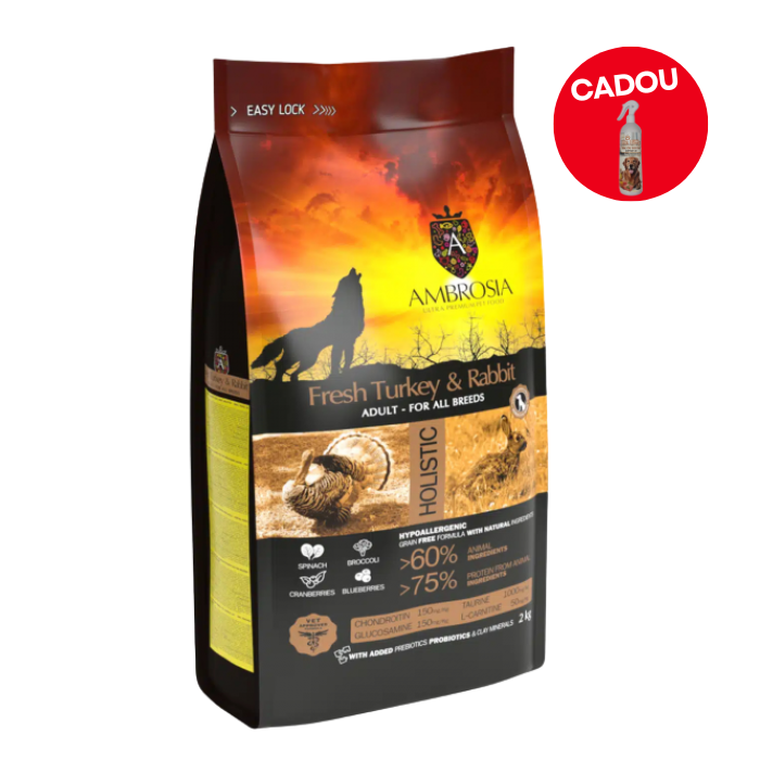 Hrana uscata pentru caini Ambrosia Adult, Curcan si iepure, hipoalergenic, fara cereale, 2kg