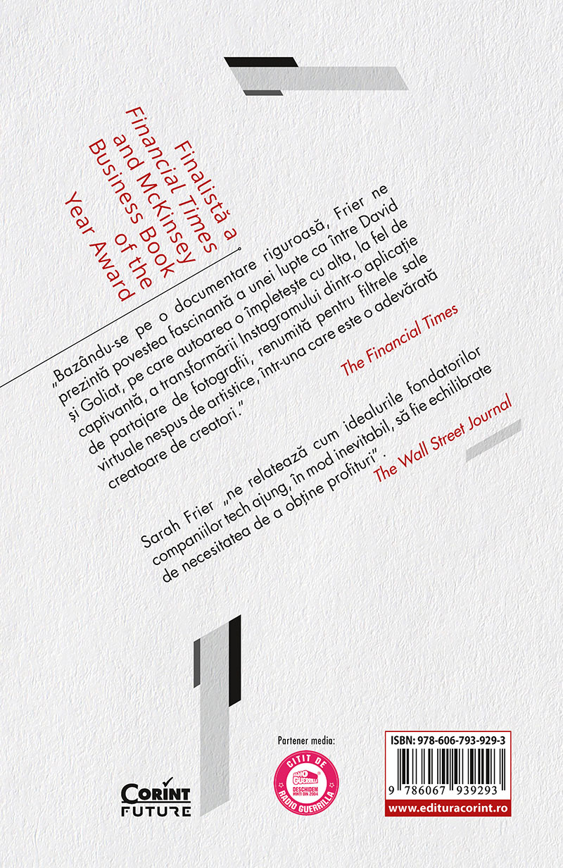 „#Nofilter. Povestea Instagramului este o istorisire detaliată și plină de viață a modului în care Instagram a ajuns la nivelul de astăzi, construind o afacere din producerea unor lucruri cool. Bazându-se pe sute de interviuri, inclusiv pe unele cu fondatorii aplicației, Kevin Systrom și Mike Krieger, și înarmată cu interpretările pe care aceștia le dau istoriei lor, Frier reușește să ne arate cum fiecare decizie a conducerii companiei a avut consecințe culturale la nivel global... Iar drama irezistibilă prezentată în această carte se desfășoară între fondatorii lui Insta și Mark Zuckerberg, CEO al lui Facebook.” National Public Radio „Bazându-se pe o documentare riguroasă, Frier ne prezintă povestea fascinantă a unei lupte ca între David și Goliat, pe care autoarea o împletește cu alta, la fel de captivantă, a transformării Instagramului dintr-o aplicație de partajare de fotografii, renumită pentru filtrele sale virtuale nespus de artistice, într-una care este o adevărată creatoare de creatori.” The Financial Times Sarah Frier „ne relatează cum idealurile fondatorilor companiilor tech ajung, în mod inevitabil, să fie echilibrate de necesitatea de a obține profituri”. The Wall Street Journal