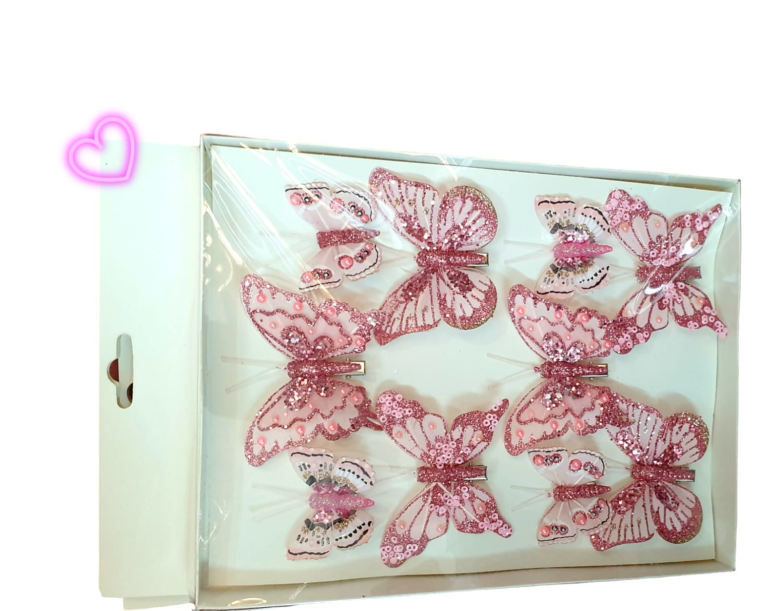 Set 10 fluturasi decorativi engros -diferite dimensiuni in set -diferite culori -sclipici +puf pene - cu clema de prindere