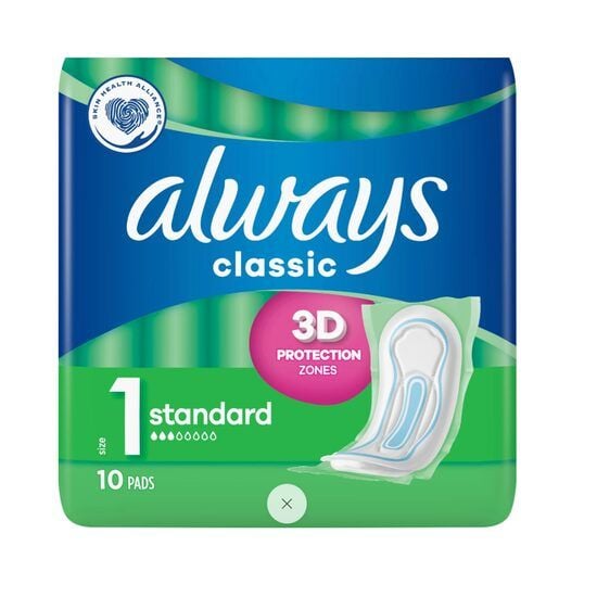 Absorbante igienice cu un strat suplimentar de protectie reprezinta o senzatie garantata de uscaciune si curatenie. Aparatoarele de chiloti asigura protectie in timpul menstruatiei. Sangerarile pot fi mai abundente la inceputul menstruatiei, asa ca este mai bine sa ajungi la cea mai buna protectie pentru a te simti increzatoare.Caracteristici ale Absorbantelor Classic Normalplacuta are o insertie de plasa Dry-WeaveAbsoarbe rapid umiditateaofera un sentiment de confort10 tampoane igienice de grosime traditionala, pentru sangerari normale, cu aripi.Datorita ochiurilor de plasa Dry-Weave si a zonelor triple de protectie, absorb rapid si eficient umezeala, oferindu-va o protectie superioara si o senzatie exceptionala de confort.Pentru confortul dumneavoastra, Always Classic sunt acum ambalate suplimentar in pliculete separate.Absorbantele Always Classic au zone triple de protectie unice, care sporesc absorbtia absorbantului si garanteaza o mai buna protectie impotriva scurgerilor.Mod ambalare 24/Bax