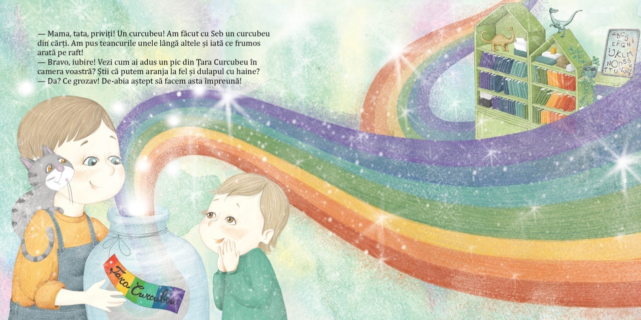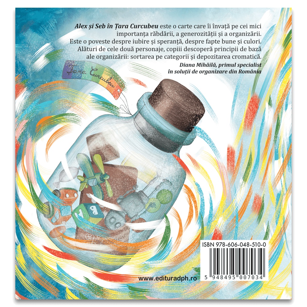 Alex și Seb în Țara Curcubeu este o carte care îi învață pe cei mici importanța răbdării, a generozității și a organizării. Este o poveste despre iubire și speranță, despre fapte bune și culori. Alături de cele două personaje, copiii descoperă principii de bază ale organizării: sortarea pe categorii și depozitarea cromatică. Despre autor: Primul specialist în soluții de organizare din România, Master Professional Organizer, jurnalist. A elaborat o metodă proprie de organizare pentru părinți cu copiii mici, iar programul de punere în ordine cu sens a locuinței, #MareaOrganizare, a fost inclus în pandemie de către Parlamentul European în rândul inițiativelor cu impact pozitiv pe scară largă. Caracteristici: Pagini: 28 Mărimi: 21,5x21,5 Autor: Diana Mihăilă Copertă: Cartonată