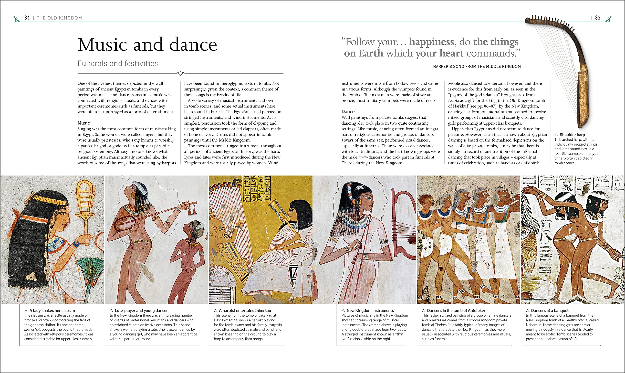 Discover the fascinating details of life under the pharaohs - and their extraordinary legacy - in this comprehensive guide to Egypts ancient civilization.Encompassing 3,000 years and 31 Egyptian dynasties, from the time of Narmer to that of Cleopatra, this fresh appraisal of ancient treasures helps you to navigate the political intrigues and cultural achievements of the Ancient Egyptians, from the Pyramids and the Sphinx of Giza to the Great Library and Lighthouse of Alexandria.You will meet pharaohs such as Tutankhamun - whose mummified remains and lavish grave goods reveal so much about the society and its beliefs - as well as influential women such as Hatshepsut and Nefertiti, and warriors including Alexander the Great. Lavish photographs reveal the craftsmanship of their scribes, artists, and metal workers, and the tomb paintings and relief carvings that captured the everyday life of farmers, artisans, soldiers, and traders in exquisite detail. Specially commissioned CGI reconstructions use the latest scientific information to recreate the finest tombs, temples, and pyramids.Beautifully illustrated, and unparalleled in scope, Ancient Egypt is the perfect book for anyone with an interest in ancient civilizations and Egyptology.