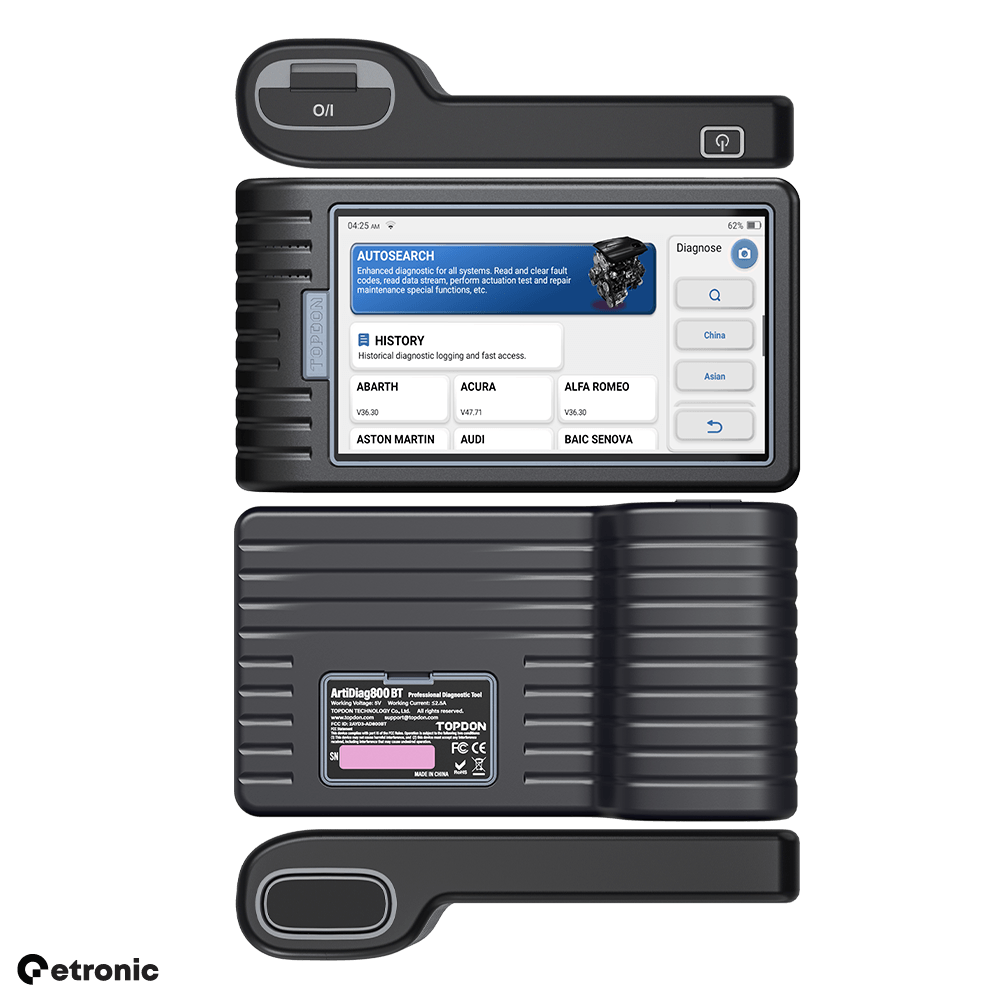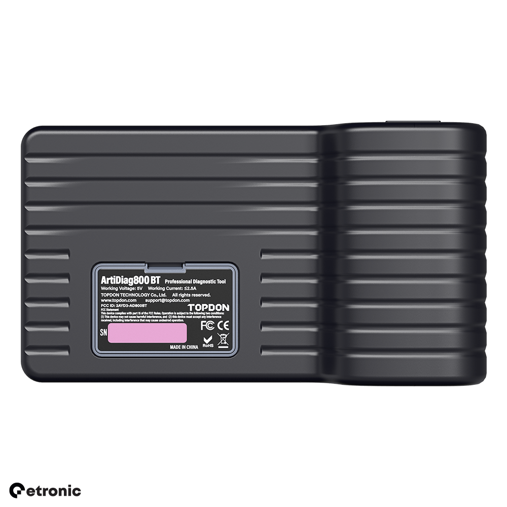 ArtiDiag800 BT este un tester auto wireless, compatibil cu peste 95 de marci de autovehicule, care ofera informatii detaliate si precise. Acest scanner OBD2 utilizeaza tehnologia AutoVIN si poate efectua resetari de baza ale computerului, dar vine si cu 28 de servicii de întretinere, cum ar fi resetarea uleiului, reglarea clapetei de acceleratie, calibrarea SAS si resetarea DPF./n/n/nTesterul auto ArtiDiag800 BT are 28 de functii de resetare, pentru peste 95 de marci auto printre care:/n/n/n/n/n- resetare interval service/n- aerisire ABS/n- regenerare DPF/n- adaptare EGR/n- resetare EPB/n- resetare SAS/n- calibrare SAS/n- codare injectoare/n- resetare presiune anvelope/n- recalibrarea sistemului electric pentru baterie/n- reglarea farurilor/n- calibrarea si configurarea sistemului panoramic al plafonului solar/n- configurarea sistemului antifurt/n- reglare acceleratie si multe altele/n/nLista de marci auto acoperite este în mod constant actualizata./n/n/n /nAcest dispozitiv efectueaza analiza si diagnosticarea urmatoarelor componente auto:/n/n- ECM (Modul de Control al Motorului)/n- Transmisie/n- Sistem ABS (Sistem Antiblocare al Frânelor)/n- Airbag/n- SAS (Sistem de Asistenta la Directie)/n- DPF (Filtrul de Particule Diesel)/n- Sistemul EVAP (Sistem de control al emisiilor prin evaporare)/n- TPMS (Sistem de Monitorizare a Presiunii în Anvelope)/n- BMS (Sistem de Management al Bateriei)/n- EPB (Sistem de Frânare Electrica)/n/n/n/nArtiDiag800 BT permite extragerea si stergerea codurilor de eroare, dezactivarea luminilor de avertizare, verificarea datelor freeze frame si vizualizarea informatiilor în timp real, fie sub forma de text detaliat, fie sub forma de grafice. Totusi, este important de mentionat ca acest dispozitiv nu suporta functionalitatea bidirectionala, ceea ce înseamna ca nu permite efectuarea testelor active asupra sistemelor./n/n/n /nRealizeaza diagnosticare wireless pe o distanta de pâna la 10m, utilizând dispozitivul Bluetooth 4.0 VCI. Acest scanner OBD2 utilizeaza tehnologia AutoVIN pentru a furniza o identificare rapida si precisa a vehiculului printr-o singura atingere, fara a fi necesara introducerea manuala a marcii, modelului si anului de fabricatie. Este important de mentionat ca functionalitatea AutoVIN poate sa nu functioneze pe toate tipurile de vehicule, dar exista optiunea sa introducerii manuale a numarul de identificare al vehiculului (VIN)./n/n/n/nActualizeaza software-ul cu un singur clic, online, pentru a fi mereu la curent cu cele mai recente informatii. Actualizarile sunt gratuite pe întreaga durata de viata a dispozitivului. În comparatie cu alte scanere care furnizeaza functionalitati similare si care adesea implica abonamente anuale, aceasta solutie reprezinta o optiune avantajoasa./n/n/n/nArtiDiag800 BT este compatibil cu majoritatea masinilor din SUA produse începând cu anul 1996, cu masinile din UE fabricate dupa anul 2000 si cu masinile asiatice produse dupa anul 2008. Beneficiezi de o garantie de un an pentru orice eventuale probleme legate de calitatea produsului. În plus, acest tester suporta 10 limbi pentru a asigura o experienta utilizator cât mai convenabila. Iar în cazul în care întâmpini dificultati, ai acces la suport online 24/7 la adresa support@topdon.com.