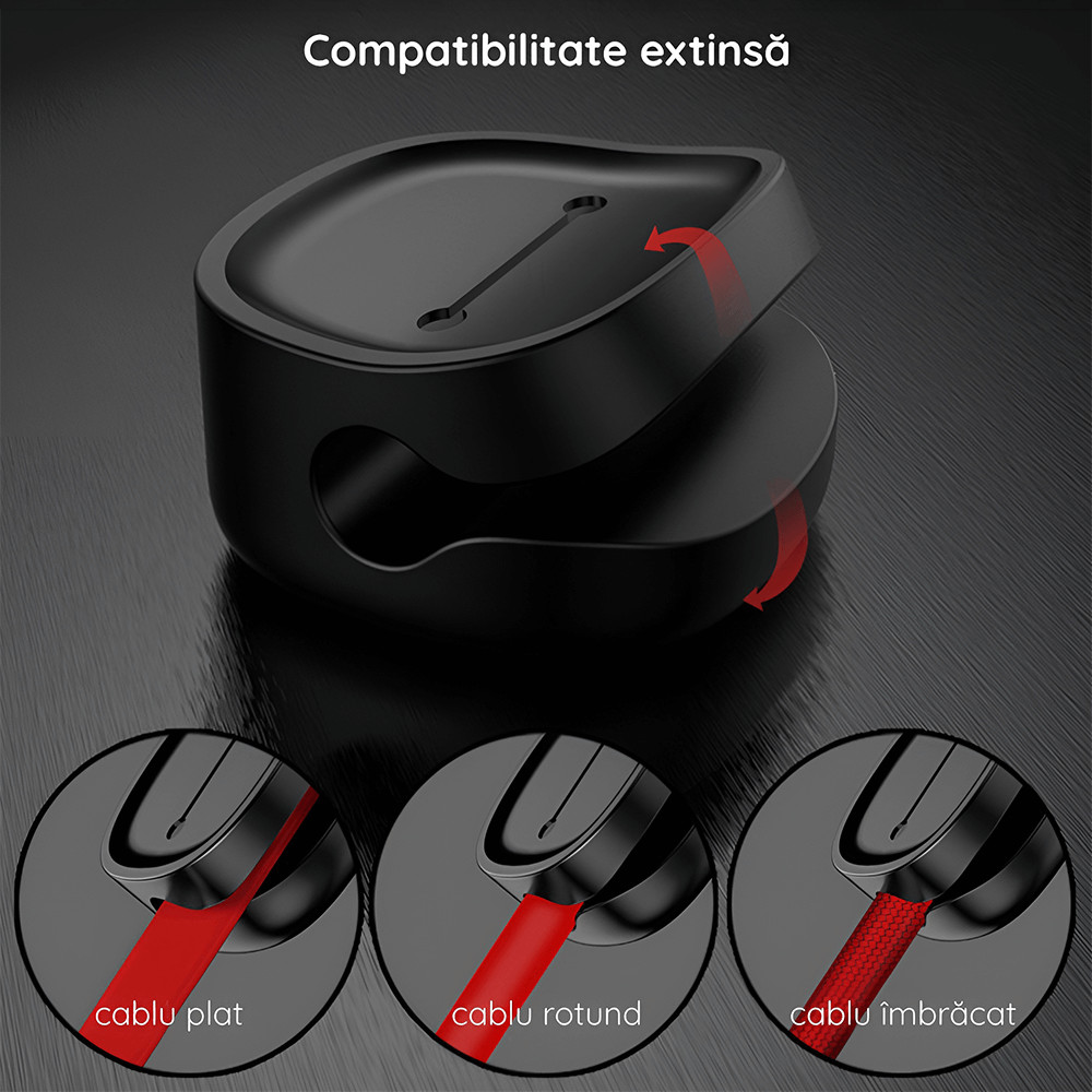 Te-ai săturat să căuți cabluri rătăcite? Fă cunoștință cu Baseus Magnetic Cable Organizer, soluția perfectă pentru spațiile de lucru dezordonate. Acest organizator negru elegant este prevăzut cu trei elemente magnetice puternice, care îți permit să fixezi în siguranță și să personalizezi distanța dintre cabluri. Spune adio haosului de cabluri și bucură-te de un spațiu de lucru mai ordonat și mai eficient. Ușor de instalat pe birouri, dulapuri sau pereți, acest organizator este atât practic, cât și elegant. Nu lăsa dezordinea de cabluri să te încetinească - preia controlul cu organizatorul de cabluri de la Baseus! Specificații tehnice: Material: ABS, TPU, magnet, metal Culoare: Negru Aplicație: Acasă, la birou sau în orice spațiu care are nevoie de organizarea cablurilor Dimensiuni: 8.5 x 1.3 x 0.6cm Greutate: 56g Diametru orificiu cablu: 1.1cm Conținut pachet: 1 x Organizator cabluri
