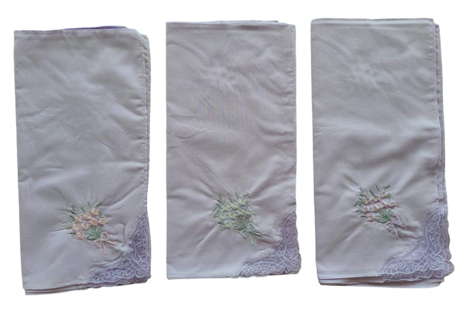 Batista pentru dama, model cu flori brodate si colt dantelat, lila, en-gros
