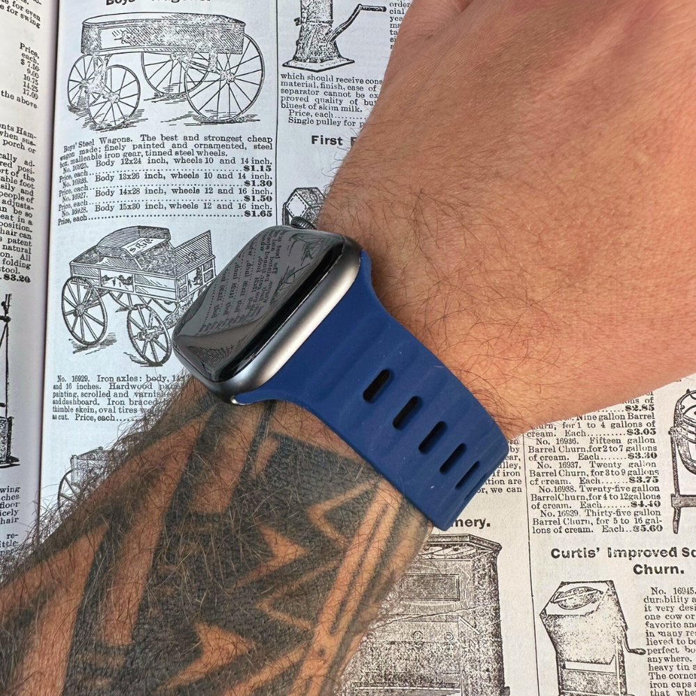 Curea Sport pentru Apple Watch de la BERMEK - Durabilitate și Confort pentru Stilul Activ ?? Cauți o curea de ceas care să fie la fel de activă și dinamică ca tine? Curea noastră sport este concepută pentru a rezista oricărei provocări, fie că ești la sala de fitness, la birou sau în drumeții! ? De ce să ne alegi? Material Inovator: Fabricată dintr-un silicon flexibil și moale, este rezistentă la activitățile zilnice. Design Simplu și Elegant: Se potrivește cu toate ocaziile, de la antrenamente intense la întâlniri de afaceri. Quick Release: Prinde și detașează curea cu ușurință, fără nevoie de unelte suplimentare. Ajustare Perfectă: Designul cu sistem de închidere reglabil asigură o potrivire perfectă pentru orice dimensiune a încheieturii. Gata de Aventură: Rezistența la apă face această curea perfectă pentru înot sau orice condiții meteo. Fă-ți ceasul să se simtă ca nou și să fie gata de acțiune cu noua noastră curea sport! ? Specificații tehnice: Culoare: Albastru Material: Silicon Lungime: 92 + 110 mm Conținut pachet: 1 x Curea (Ceasul nu este inclus) Compatibilitate: Apple Watch Series Ultra, Ultra 2, 9, 8, 7, 6, 5, 4, 3, 2, 1, SE, SE 2 - display 42 / 44 / 45 / 49 mm Atenție! Vă recomandăm să luați în considerare că produsul poate avea o culoare usor diferită decât cea afișata din cauza diferențelor de calibrare ale ecranelor și de sursele de lumină din cameră!