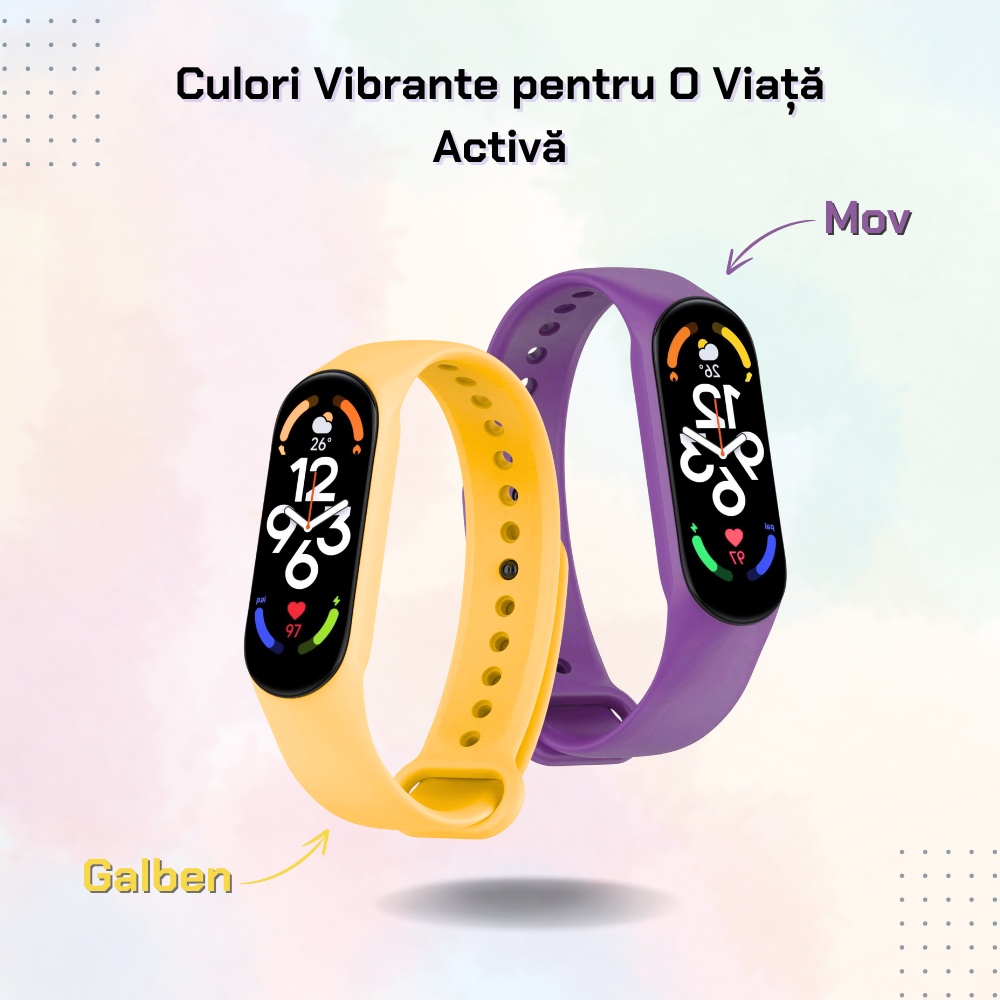 ? Întărește protecția brățării tale fitness cu combinația de curele și folie BERMEK, creată special pentru Xiaomi Mi Band 7. Este mai mult decât o protecție; este o declarație că îți pasă de brățara ta.? Pachetul nostru oferă nu numai o explozie de culoare, ci și o protecție fiabilă cu un protector de ecran 3D inclus. Perfect pentru pasionații de fitness și pentru cei care se ocupă de stil deopotrivă! ??♂️? De ce să ne alegi? ✅ Curele cu două nuanțe: Alege dintr-o serie de opțiuni cu două culori pentru a se potrivi cu starea de spirit sau ținuta ta zilnică. Fie că este vorba de combinația clasică de negru și verde pentru un aspect elegant, sau de galbenul și movul jucăuș pentru un strop de veselie, curelele noastre din silicon sunt confortabile, durabile și perfecte pentru orice ocazie. ✅ Protecție de ecran 3D inclusă: Păstrează-ți ecranul fără zgârieturi cu ajutorul foliei noastre de ecran 3D ușor de aplicat. Concepută pentru a oferi acoperire de la margine la margine fără a afecta sensibilitatea la atingere. ✅ Instalare ușoară: Schimbă curelele și aplică folia de ecran în doar câteva minute cu designul nostru fără complicații. ✅ Confort pe toată durata zilei: Material din silicon moale și ușor, perfect pentru a fi purtat toată ziua. ✅ Ajustare reglabilă: Mai multe opțiuni de ajustare pentru a obține o potrivire perfectă pentru încheietura mâinii tale. ✅ Rezistent la apă: Mergi la piscină sau fă un duș fără griji. Curelele noastre sunt rezistente la apă și sunt pregătite pentru toate aventurile tale. Specificații tehnice Culoare: Galben, Mov Material: Silicon Lungime: 25 cm Conținut pachet: 2 x Curea (Brățara Smartwatch nu este inclusă), 1 x Folie 3D Compatibilitate: Proiectat perfect pentru Xiaomi Mi Band 7. Nu este compatibil cu alte modele. Împrospătează aspectul Xiaomi Mi Band-ului tău astăzi și bucură-te de combinația perfectă de culori și de protecție! ?