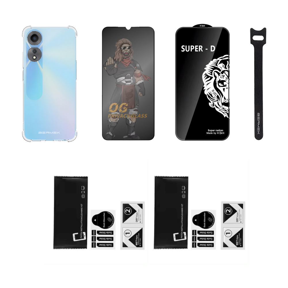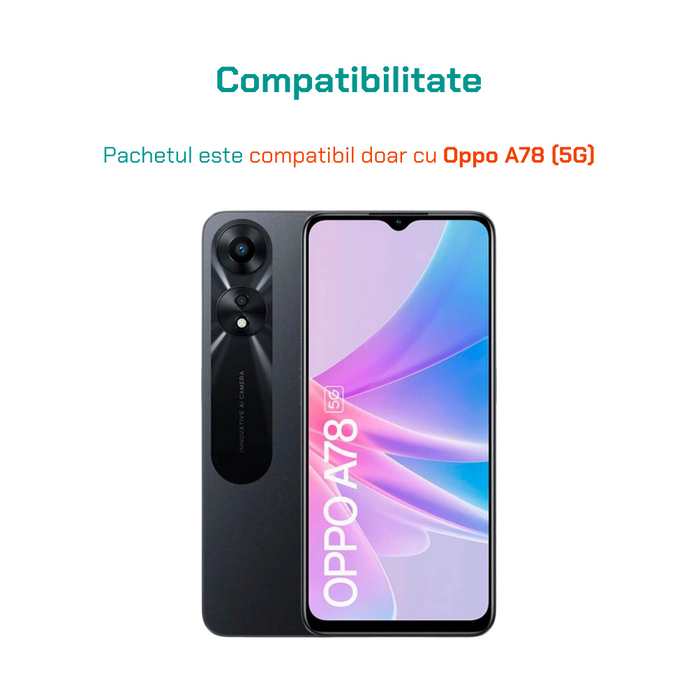 Set Complet de Accesorii de la Bermek pentru Oppo A78 (5G) - Protecție și Organizare Asigură-te că telefonul tău Oppo A78 (5G) rămâne în condiții optime cu acest set complet de accesorii de la Bermek, special conceput pentru siguranța și comoditatea ta. Husa antișoc subțire, transparentă, cu colțuri întărite pentru absorbția șocurilor, protejează împotriva căzăturilor și impacturilor. Designul său minimalist nu adaugă volum suplimentar, păstrând linia elegantă a telefonului. Folia transparentă asigură o protecție superioară împotriva zgârieturilor și impacturilor, fără a afecta sensibilitatea touchscreen-ului sau claritatea ecranului. Folia de protecție privacy limitează unghiul de vizualizare al ecranului, protejându-ți informațiile personale de privirile indiscrete în locuri aglomerate. Organizatorul de cabluri cu velcro te ajută să îți menții cablurile organizate și accesibile. Este simplu de utilizat și extrem de funcțional. Cutia reutilizabilă din metal este durabilă și perfectă pentru depozitare. Cu acest set complet, telefonul tău Oppo A78 (5G) va fi protejat și gata de orice provocări! Specificații tehnice: Compatibilitate: Oppo A78 (5G) Husă: Material: Silicon Grosime: 0.3 mm Folie de Protecție: Material: Sticlă temperată Duritate: 9H Conținut pachet: 1 x Husa 1 x Folie transparenta 1 x Folie privacy 1 x Organizator cabluri 2 x Kit de curățare