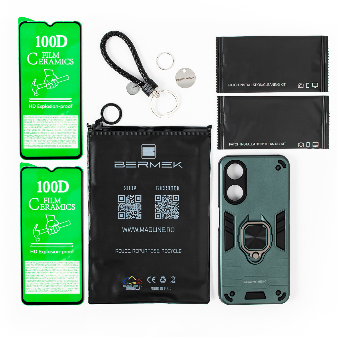 Bermek Husa Oppo A78 5G, husa antisoc - 2x Folie telefon, Verde