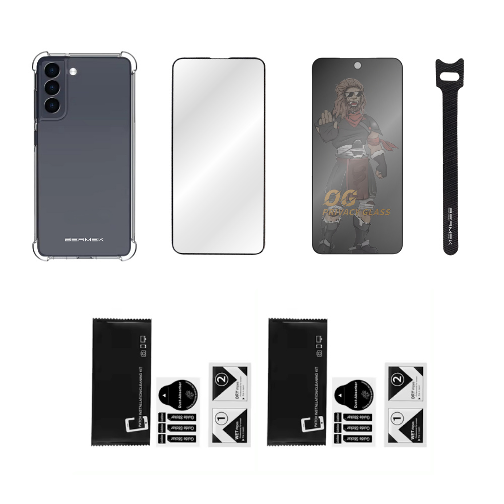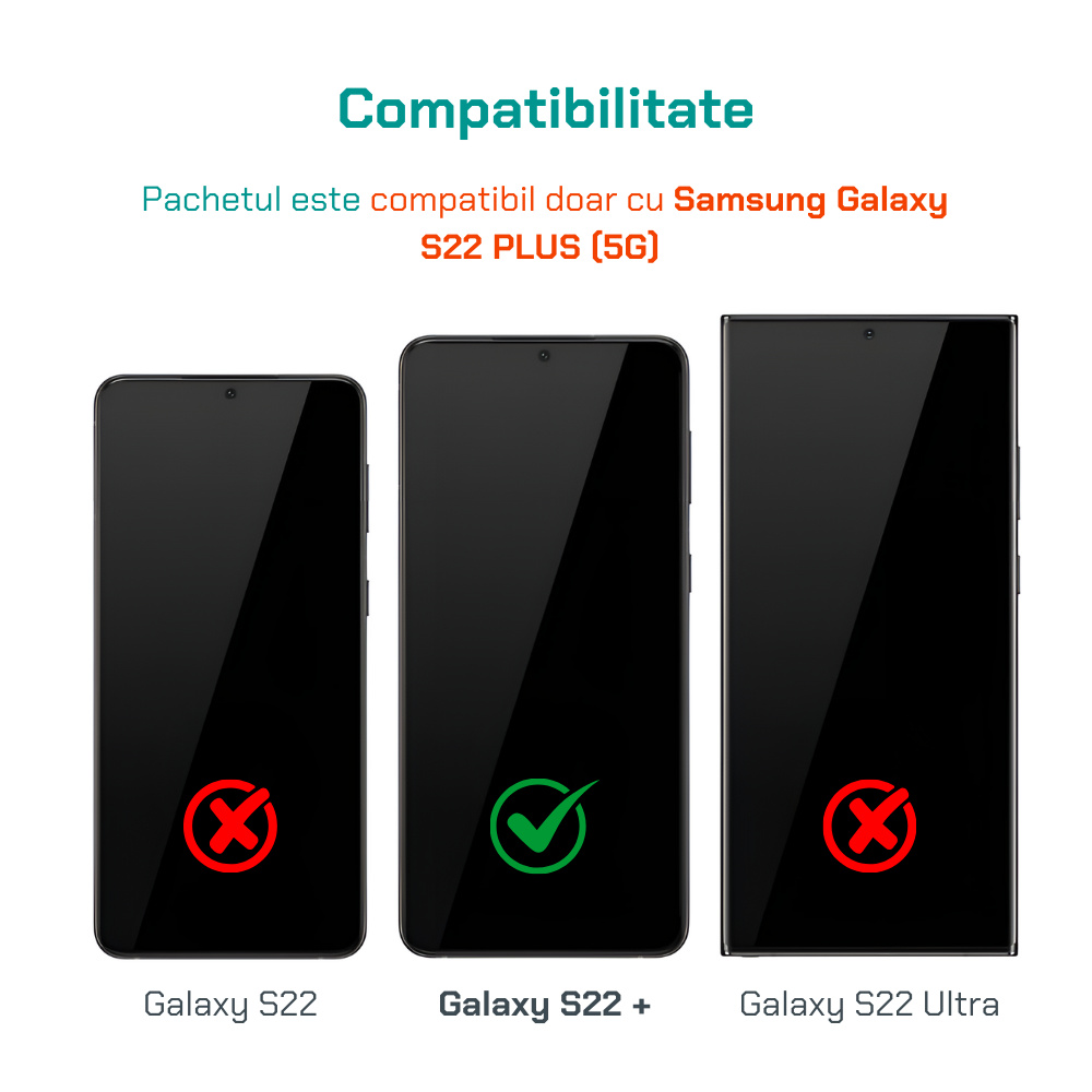 Set Complet de Accesorii de la Bermek pentru Samsung Galaxy S22 Plus - Protecție și Organizare Asigură-te că telefonul tău Samsung Galaxy S22 + rămâne în condiții optime cu acest set complet de accesorii de la Bermek, special conceput pentru siguranța și comoditatea ta. Husa antișoc subțire, transparentă, cu colțuri întărite pentru absorbția șocurilor, protejează împotriva căzăturilor și impacturilor. Designul său minimalist nu adaugă volum suplimentar, păstrând linia elegantă a telefonului. Folia transparentă asigură o protecție superioară împotriva zgârieturilor și impacturilor, fără a afecta sensibilitatea touchscreen-ului sau claritatea ecranului. Folia de protecție privacy limitează unghiul de vizualizare al ecranului, protejându-ți informațiile personale de privirile indiscrete în locuri aglomerate. Organizatorul de cabluri cu velcro te ajută să îți menții cablurile organizate și accesibile. Este simplu de utilizat și extrem de funcțional. Cutia reutilizabilă din metal este durabilă și perfectă pentru depozitare. Cu acest set complet, telefonul tău Samsung Galaxy S22 Plus va fi protejat și gata de orice provocări! Specificații tehnice: Compatibilitate: Samsung Galaxy S22 PLUS Husă: Material: Silicon Grosime: 0.3 mm Folie de Protecție: Material: Sticlă temperată Duritate: 9H Conținut pachet: 1 x Husa 1 x Folie transparenta 1 x Folie privacy 1 x Organizator cabluri 2 x Kit de curățare