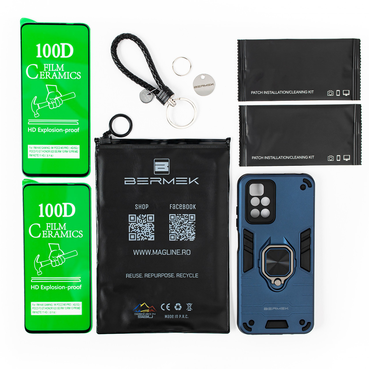 Scut indestructibil pentru Xiaomi Redmi 10 2022: BERMEK Armor Case & Ceramic Film ?️ Întărește protecția telefonului tău cu combinația de husă și folie BERMEK, creată special pentru Xiaomi Redmi 10 2022. Este mai mult decât o protecție; este o declarație că îți pasă de telefonul tău. De ce BERMEK? Potrivire perfectă: Realizate pentru Xiaomi Redmi 10 2022, husa noastră și protecția de ecran asigură că funcționalitatea telefonului tău rămâne una de top. ? Protecție nevăzută: Pelicula ceramică 100D HD rezistentă la explozie și oferă un scut invizibil împotriva loviturilor și zgârieturilor din viața de zi cu zi. ? Ecologic: Ne implicăm pe termen lung cu ambalaje făcute pentru a reutiliza, refolosi și recicla. ♻️ Kit All-In-One: Obține tot ceea ce ai nevoie pentru o instalare curată cu kitul nostru complet de curățare. ? Avantajele produsului: Durabilitatea întâlnește designul: Telefonul tău va rezista la agitația vieții de zi cu zi, în timp ce va arăta elegant. ? Claritate Crystal-Clear: Menține-ți ecranul impecabil și neobturat cu ajutorul foliei noastre de protecție. ✨ Ușurința de utilizare: Instalarea este o joacă de copii, readucându-te fără întârziere la ceea ce este important. ⏱️ Specificații: Compatibiltate: Xiaomi Redmi 10 2022 Material: Silicon, plastic Pachetul include: 1 x Husă BERMEK, 2 x Folie ceramică, 1 x Kit de curățare, 1 x Breloc ? Surprinde cu durabilitate: Alege BERMEK și oferă-i Xiaomi Redmi 10-ului tău cea mai bună protecție. ?️