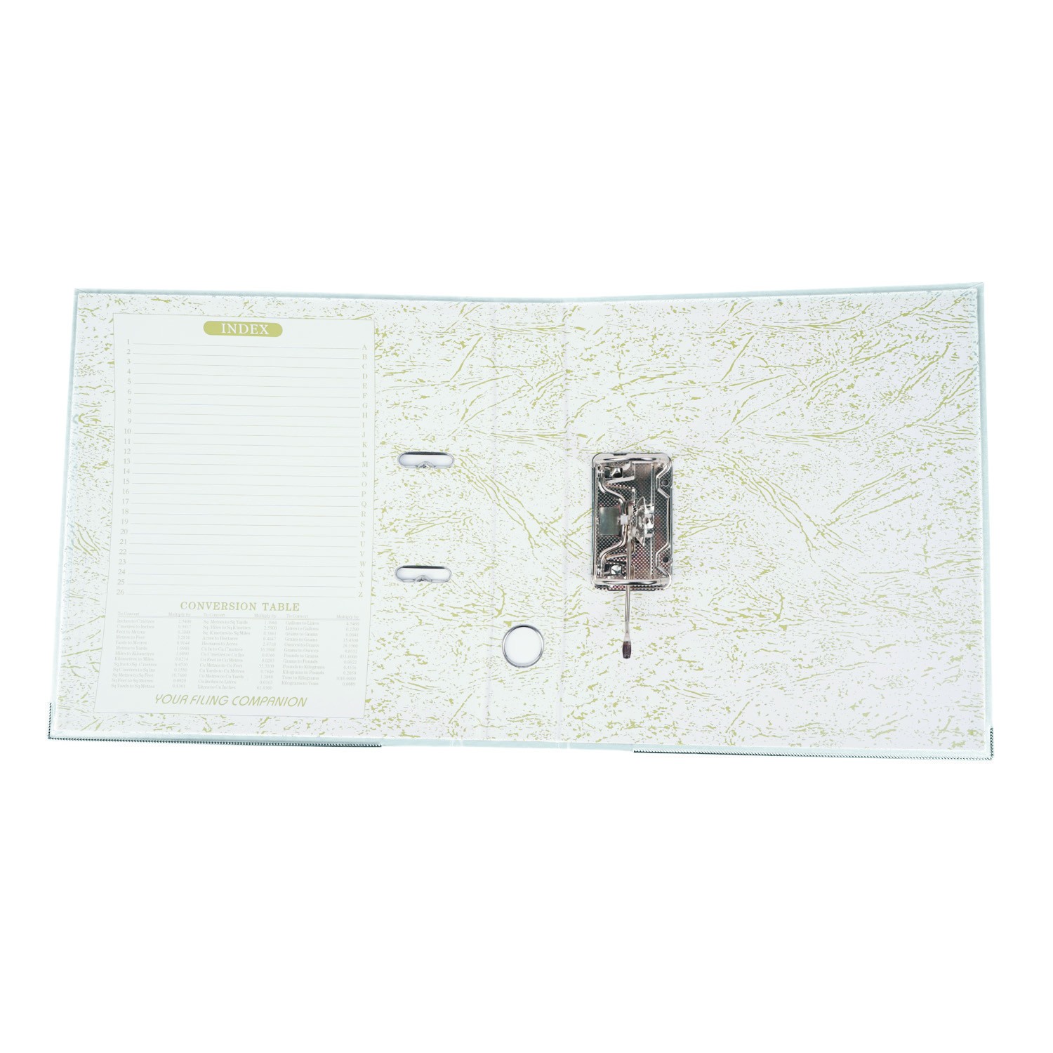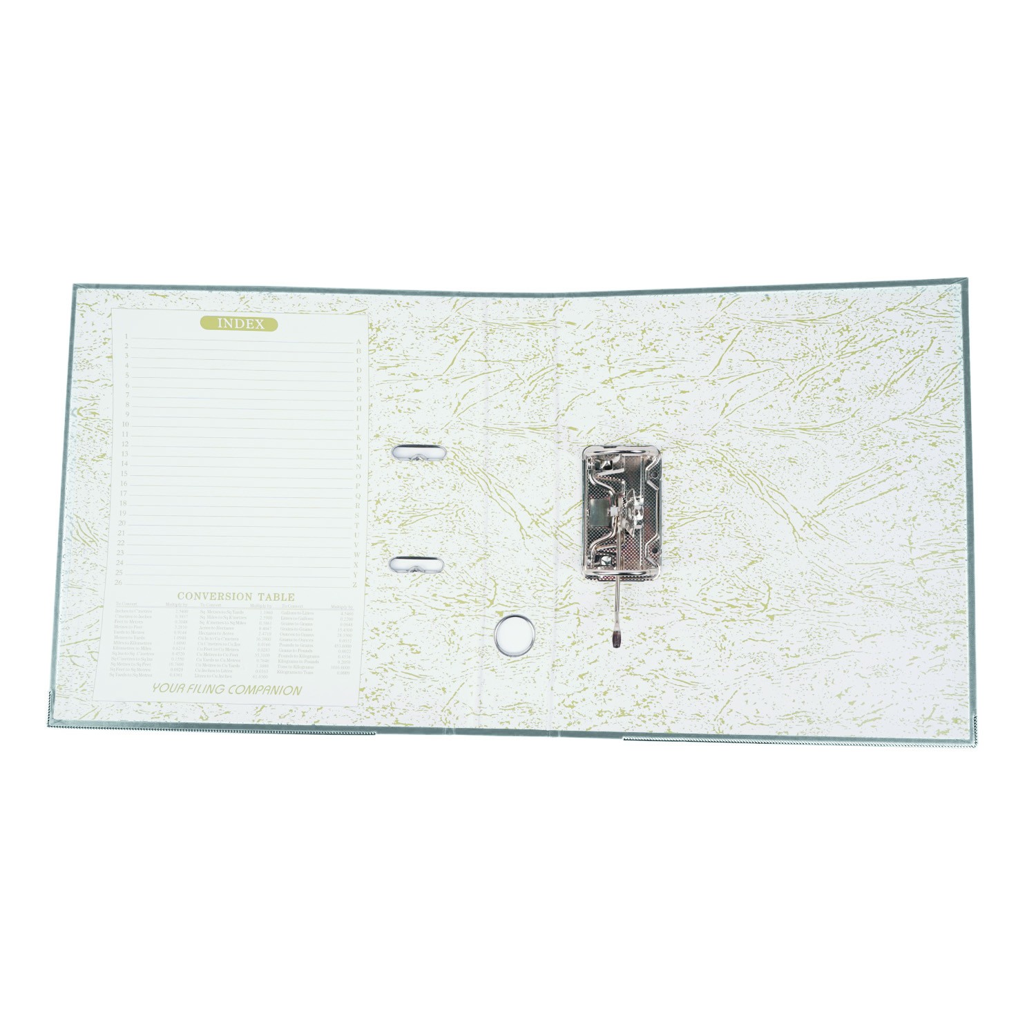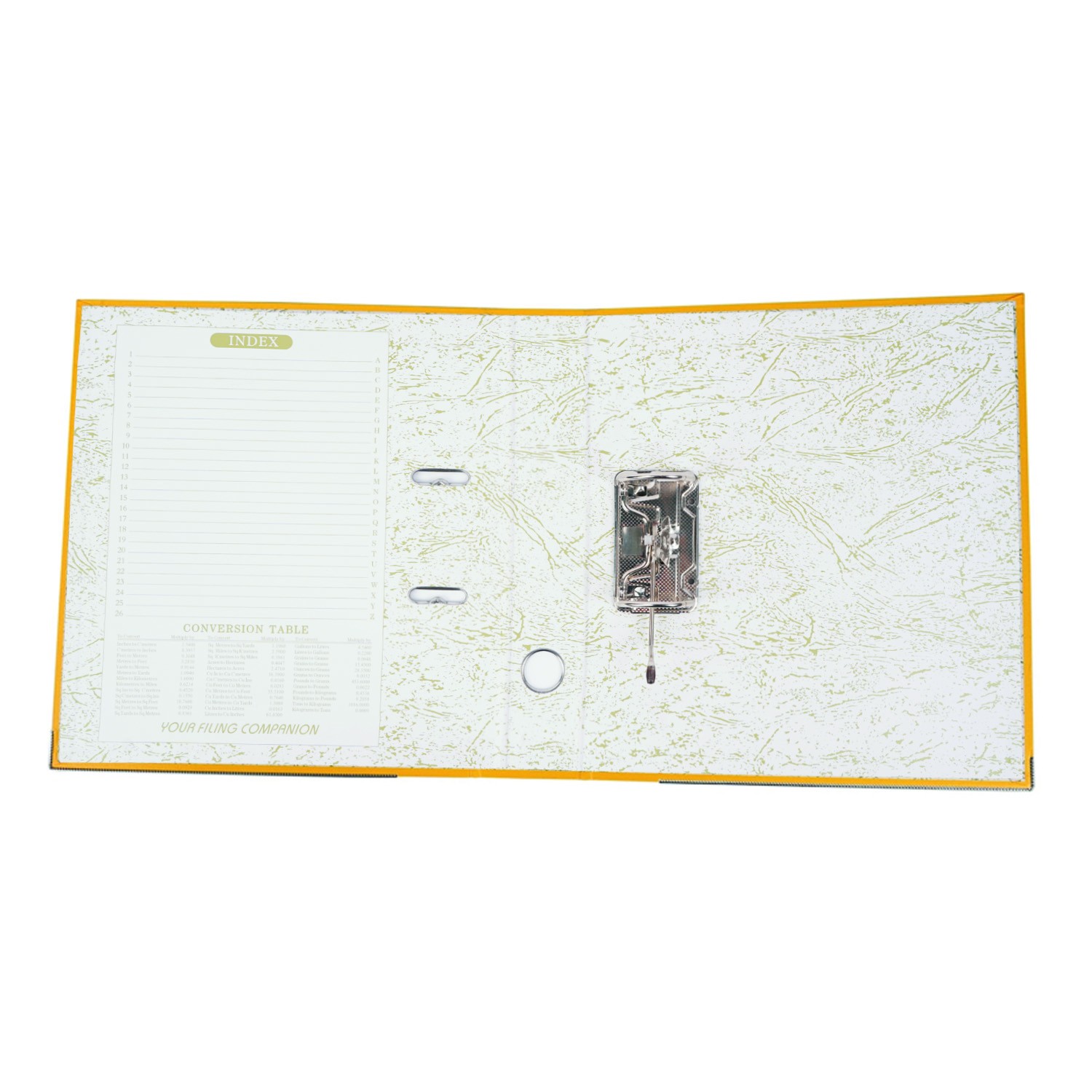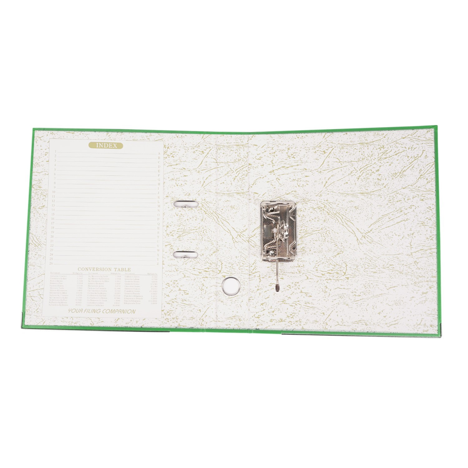 Biblioraft plastifiat, A4, latime cotor 5 cm, bordura metalica, diverse culori Biblioraftul confectionat din carton plastifiat este ideal pentru clasarea si depozitare documentelor in format A4, avand o capacitatea de stocare de pana la 350 de coli. Pentru o identificare mai rapida a continutului, biblioraftul este prevazut cu eticheta pe cotor, interschimbabila. In partea inferioara este dotat cu sina metalica pentru o buna rezistenta la uzura, dar si cu un orificiu de prindere metalic pentru o manevrare mai usoara. Datorita mecanismului de deschidere la 180 de grade, biblioraftul permite clasarea documentelor pe ambele parti ale inelelor, astfel incat clasarea documentelor sa fie una mai rapida decat in mod obisnuit. Biblioraftul are o latime a cotorului de 5 cm, latimea totala de 30 si inaltime de 31.5 cm. Specificatii: - biblioraft arhivare documente; - pentru documente in format A4; - permite arhivarea pe ambele parti; - capacitate 350 coli; - deschidere la 180 de grade; - orificiu de prindere pe cotor; - buzunar si eticheta interschimbabila pe cotor; - mecanism de prindere metalic; - bordura metalica la baza; - latime cotor 5 cm; - latime totala 30 cm; - inaltime 31.5 cm; - material carton plastifiat; - culoare interior: alb, verde. Produsul este disponibil in mai multe culori: negru, gri, rosu, galben, verde, albastru, alb. Culoarea aleasa o puteti alege cu ajutorul selectorului de mai sus.