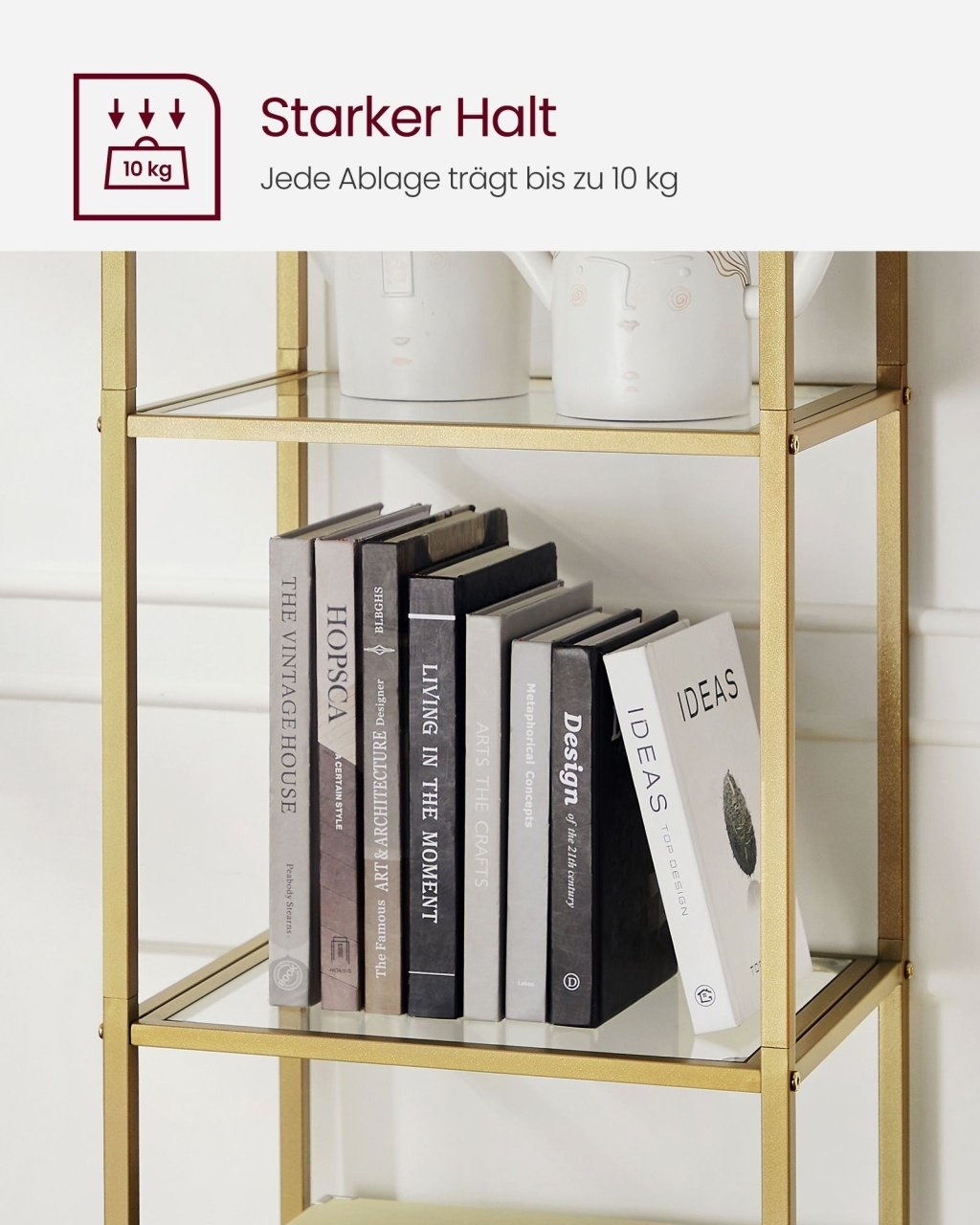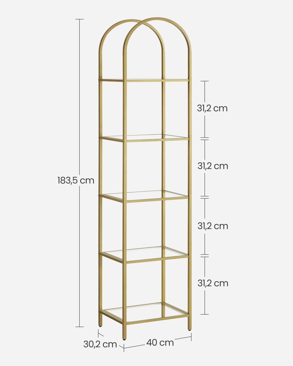 Biblioteca Auriu Vasagle - Eleganță și Funcționalitate Descoperiți biblioteca Auriu Vasagle , un element de mobilier care îmbină stilul modern cu practicitatea . Cu un design elegant în formă de arc și rafturi din sticlă transparentă, această bibliotecă este perfectă pentru a expune cu mândrie obiectele dumneavoastră de valoare. Culoarea auriu metalic adaugă un strop de rafinament oricărei încăperi. Rafturi Spațioase pentru Toate Nevoile Cu dimensiunile de 30.2 x 40 x 183.5 cm , biblioteca dispune de 5 rafturi generoase, fiecare având o distanță de 31.2 cm între ele, oferind suficient spațiu pentru cărți, rame foto, vaze și multe altele. Aceasta este o alegere excelentă pentru a organiza și a adăuga un plus de stil în orice cameră. Stabilitate și Siguranță Rafturile din sticlă securizată de 5 mm grosime sunt dotate cu pad-uri anti-alunecare , asigurând o susținere stabilă de până la 10 kg fiecare. Picioarele ajustabile mențin biblioteca echilibrată, iar kitul anti-întoarcere oferă un plus de siguranță, prevenind accidentele. Versatilitate în Orice Spațiu Indiferent dacă doriți să o folosiți pentru a expune decorațiuni în living, pentru a organiza documente în birou, pentru a stoca coșuri în dormitor sau chiar pentru produse de toaletă în baie, această bibliotecă se dovedește a fi extrem de practică . Sticla impermeabilă și oțelul rezistent la rugină o fac ideală pentru orice mediu. Detalii Tehnice Culoare: Auriu metalic, transparent Material: Sticlă securizată, oțel Dimensiune produs: 40 x 30 x 183 cm Dimensiune pachet ambalat: 57.5 x 41 x 18 cm Greutate: 11.2 kg Capacitate maximă de încărcare statică pe raft: 10 kg Îmbunătățiți-vă Spațiul cu Biblioteca Auriu Vasagle! Nu ratați ocazia de a adăuga un element de calitate superioară în casa dumneavoastră. Comandați acum biblioteca Auriu Vasagle și transformați-vă spațiul într-un loc elegant și organizat!