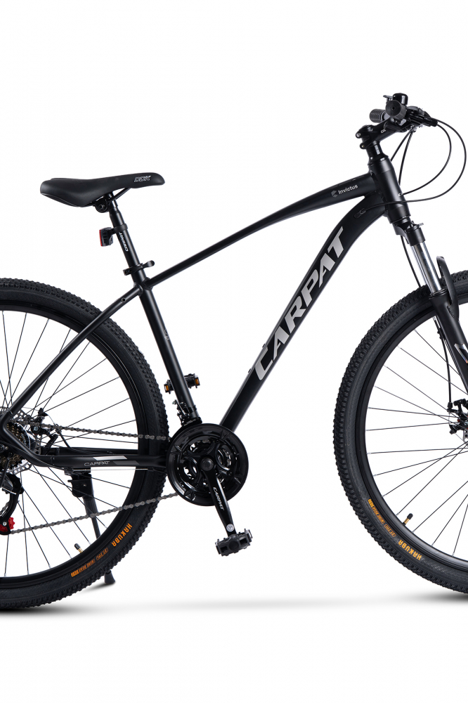 Bicicleta MTB Carpat Invictus C29357C 29quot, Transmisie Shimano Tourney, 21 Viteze, Cadru Aluminiu, Roti 29 Inch, Frane Shimano mecanice pe Disc, Furca cu blocator, NegruGriDaca iubesti aventura si v