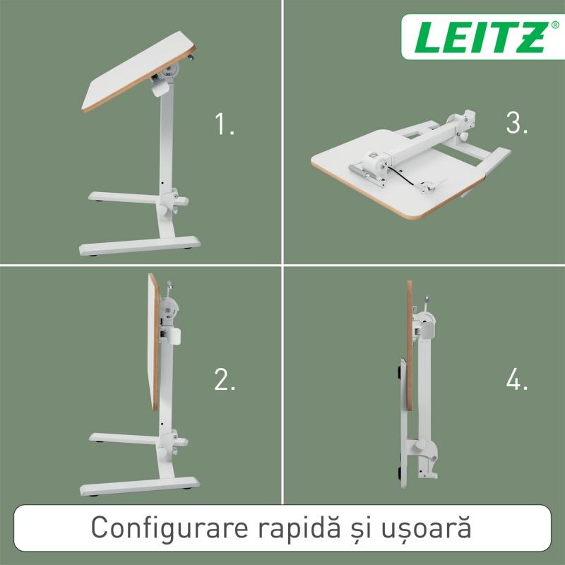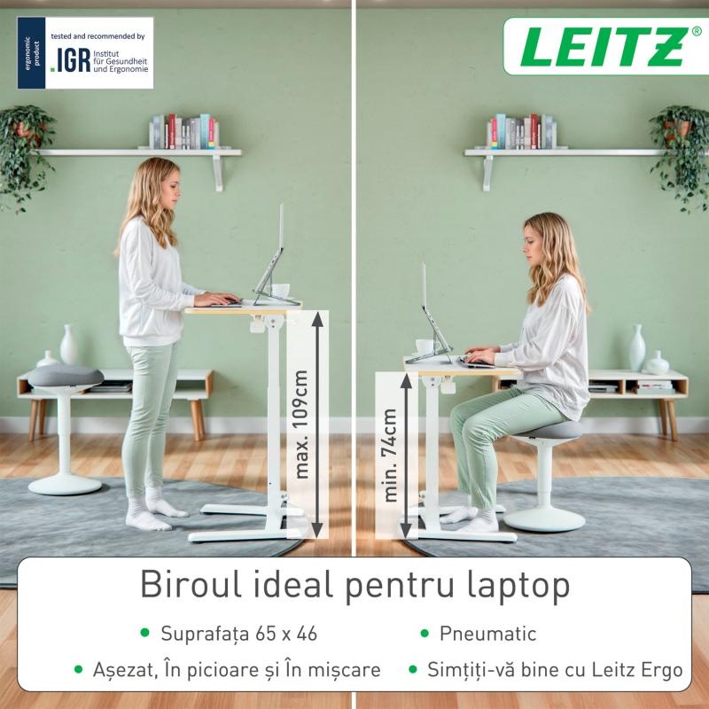 irou ergonomic pliabil Leitz Ergo – Spațiul inteligent care se adaptează stilului tău de lucru Un birou modern reglabil , creat pentru mobilitate și confort, care transformă orice colț al casei sau biroului într-o stație de lucru ergonomic optimizată pentru productivitate și postură corectă. Gândit pentru utilizatori activi și dinamici, acest model îmbină funcționalitatea unui birou pentru muncă la calculator cu versatilitatea unei mese de lucru ergonomice . Indiferent dacă îl folosești ca birou ergonomic pentru copii și adolescenți , ca suport pentru întâlniri rapide sau ca spațiu complet de lucru, designul său minimalist îți oferă flexibilitate totală. Biroul ergonomic pliabil ajustabil pe înălțime Ergo Leitz este soluția ideală pentru cei care caută un mobilier inteligent, practic și adaptabil. Conceput pentru locuințe moderne, spații mici sau birouri care necesită reconfigurare rapidă, acest birou poate fi pliat la doar 16 cm grosime , ceea ce permite depozitarea sa în locuri înguste – lângă dulap, sub pat, după ușă sau în săli de ședință. Cântărind numai 11 kg , este ușor de transportat și mutat oriunde ai nevoie. Instalarea este instantanee, iar designul său compact îți permite să îl folosești în orice spațiu restrâns, fără efort. Blatul generos de 65 x 46 cm oferă suficient loc pentru laptop cu suport, tastatură, mouse și documente, oferindu-ți un spațiu de lucru stabil și eficient. Reglarea pneumatica a înălțimii (interval 74–109 cm ) permite trecerea rapidă între lucrul în poziție șezut și stat în picioare, ceea ce reduce tensiunea lombară și susține o postură corectă pe termen lung – o caracteristică esențială pentru un birou ergonomic pentru acasă sau pentru un birou ergonomic pentru birou . Biroul este certificat GS și TÜV , ceea ce garantează siguranța și rezistența sa. Picioarele sunt prevăzute cu protecții anti-zgâriere și reglaje ce stabilizează masa și pe podele denivelate. Structura suportă o sarcină maximă de 20 kg , iar produsul vine complet asamblat, în ambalaj fără plastic, reciclabil, cu instrucțiuni intuitive. Un birou ergonomic ajustabil potrivit pentru oricine are nevoie de confort, mobilitate, poziție corectă și o experiență de lucru echilibrată – fie acasă, fie la birou. Birouri la Prețuri Atractive | Design-uri moderne și calitate superioară! Adăugați acum în coș birourile de la Horus Center la un raport calitate-preț excelent. Horus Center - magazinul tău de birotică și papetărie online unde calitatea întâlnește accesibilitatea!