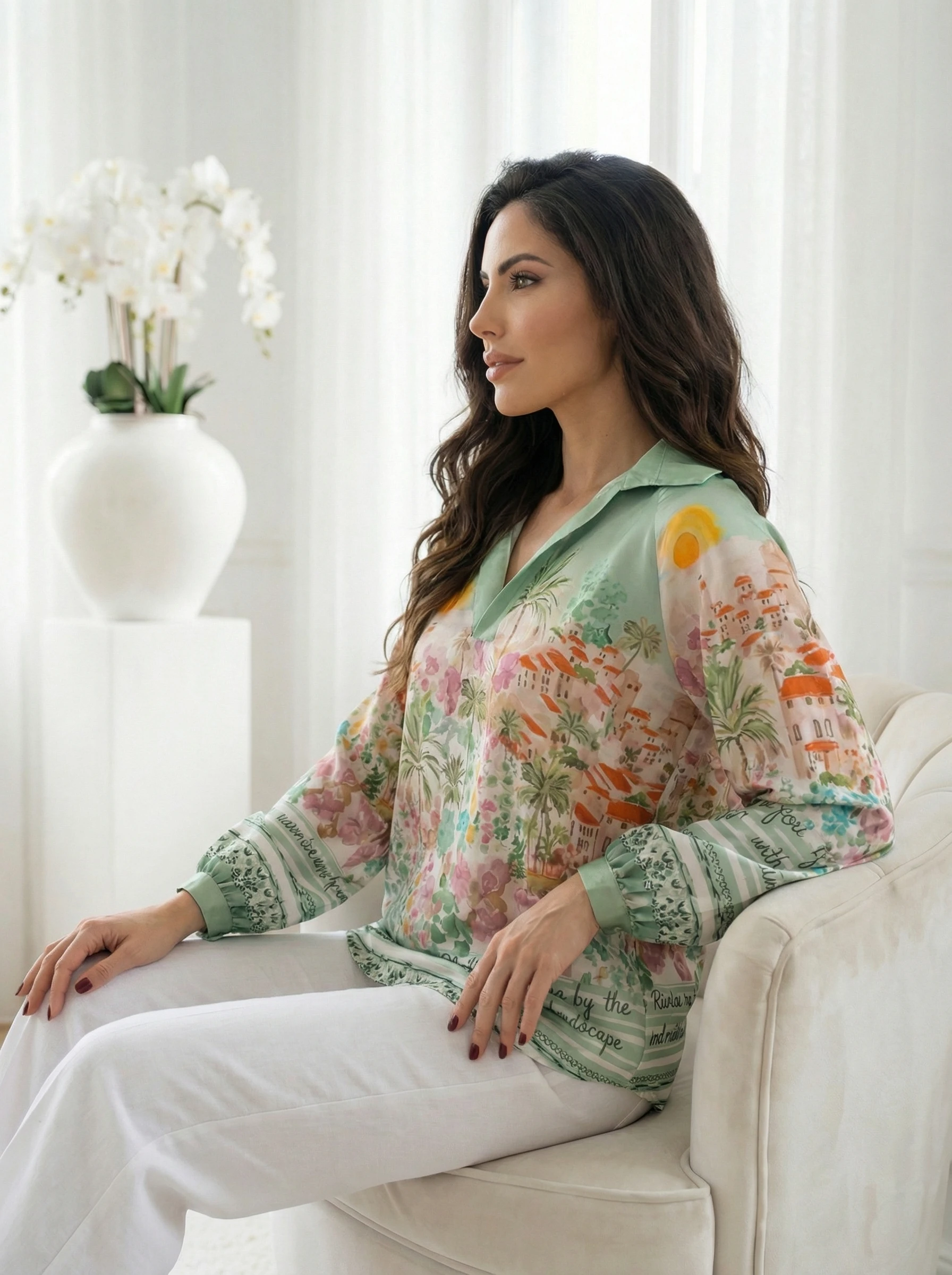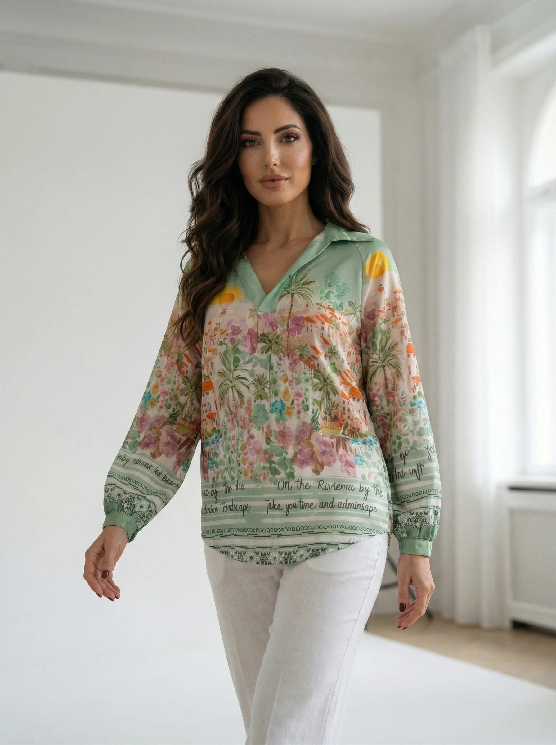 Bluza verde cu imprimeu Riviera si detalii grafice, o piesa vestimentara vibranta ce evoca atmosfera relaxata a vacantelor, fiind perfecta pentru a adauga o nota de originalitate garderobei tale. Realizata dintr-un material fluid si placut la atingere, ac
