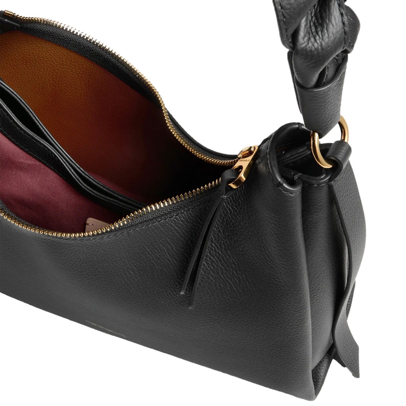 Geanta Boheme de la Coccinelle este confecționată din piele naturală moale, cu o textură plăcută la atingere. Mânerul împletit îi oferă un aer feminin și actual, iar forma fluidă și designul curat o fac potrivită pentru orice moment al zilei. Este practică și spațioasă, ideală pentru uz zilnic, datorită pielii prelucrate pe ambele fețe printr-un proces special care îi conferă rezistență și finețe.