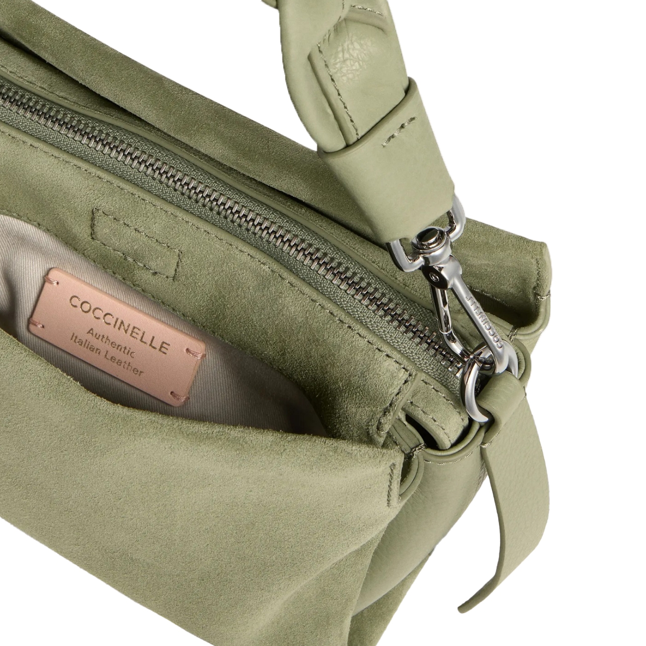 Geanta Boheme de la Coccinelle redefinește eleganța modernă printr-un design rafinat și atemporal. Realizată din piele moale și catifelată, cu mâner împletit detașabil, oferă un echilibru perfect între stil și confort. Confecționată din piele întoarsă și piele texturată, tratată special împotriva decolorării, este prevăzută cu o curea lungă, reglabilă și detașabilă, pentru purtare pe umăr sau crossbody. Interiorul spațios include un compartiment principal cu fermoar, două compartimente magnetice și două buzunare interioare, dintre care unul cu fermoar. Elegantă, funcțională și ușor de asortat, Boheme este geanta ideală pentru femeia sofisticată și dinamică.