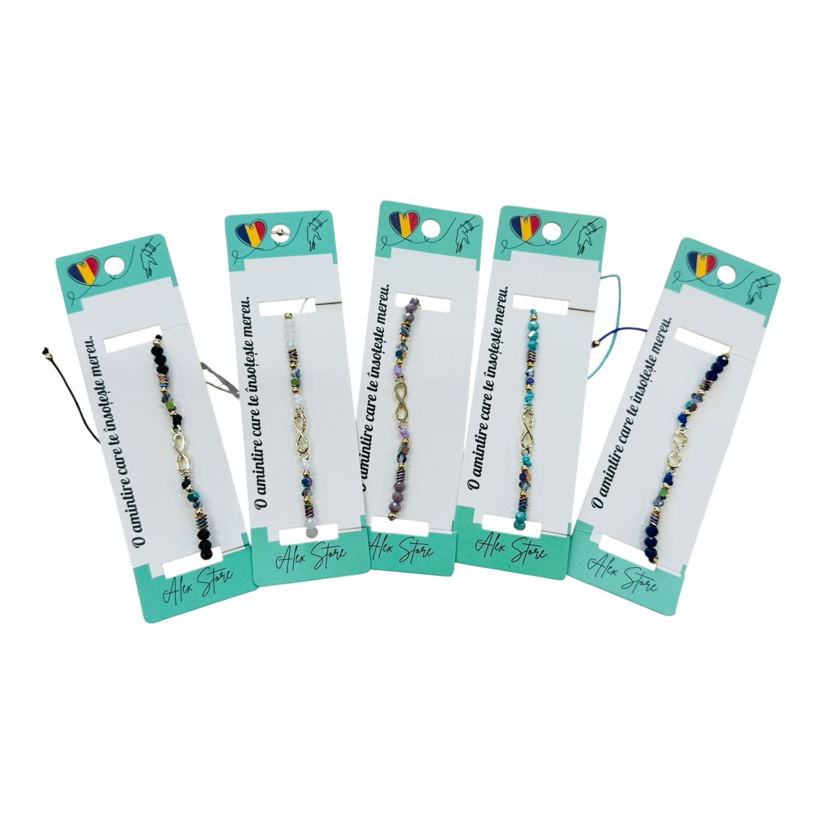 Bratara cu margele colorate si detaliu metalic decorativ este un accesoriu modern si simbolic, perfect pentru purtare zilnica sau cadou. Disponibila in mai multe combinatii cromatice, aceasta bratara adauga un strop de eleganta si personalitate oricarei tinute. Designul fin, cu margele mici si element central auriu, este montat pe snur reglabil, usor de ajustat pentru orice incheietura. Modelul este potrivit pentru femei, fete si adolescente care prefera bijuteriile discrete, dar expresive. Poate fi purtata individual sau alaturi de alte bratari pentru un efect boho, urban sau casual chic. O alegere inspirata pentru cadouri simbolice si accesorii de zi cu zi.