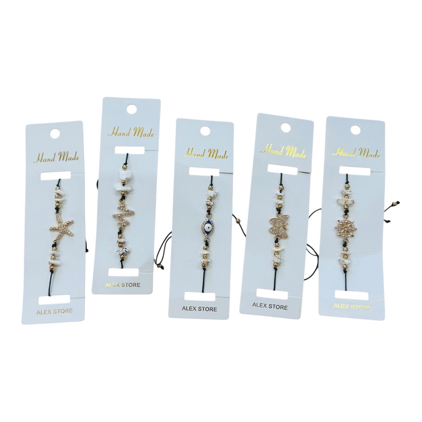 Bratarile cu margele albe si pandantive aurii sunt accesorii elegante si pline de semnificatie, perfecte pentru femei si fete care apreciaza detaliile simbolice. Fiecare bratara include un element decorativ central – cum ar fi steluta de mare, ochi protector, floare sau soare – oferind un design unic, cu vibe de vara si energie pozitiva. Montate pe snur negru reglabil, aceste bratari sunt usor de purtat si se potrivesc perfect pe orice incheietura. Margelele sidefate si accentele aurii adauga un plus de rafinament si stil. Ideale pentru tinute casual sau de vacanta, aceste bratari pot fi purtate individual sau in seturi. O alegere inspirata pentru cadouri simbolice sau ca accesorii personale de efect.