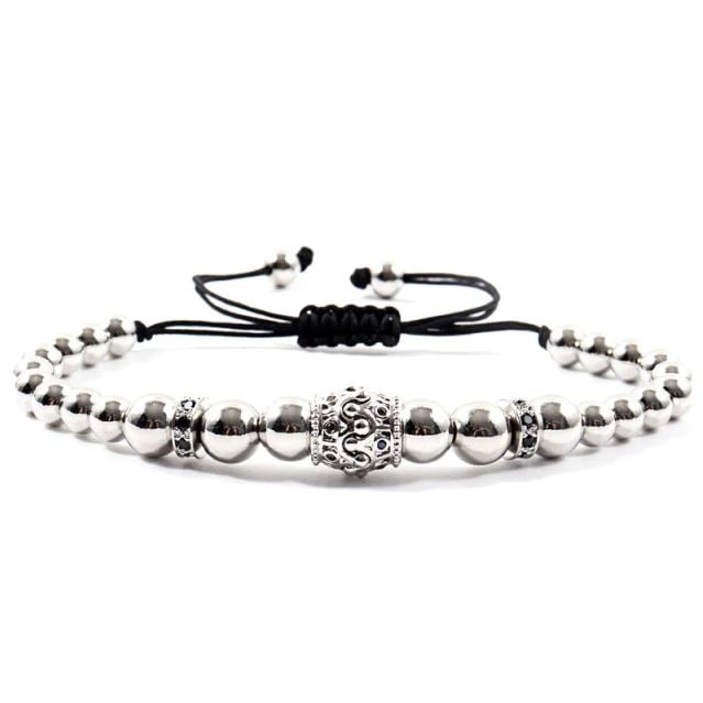 Bratara Double Crown, Margele, pentru Barbati, Cristale Zirconiu, Argintiu Engros