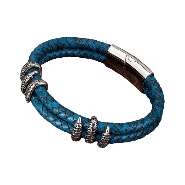 Bratara Dragon, Barbati, Piele Naturala, Albastru-Argintiu Engros