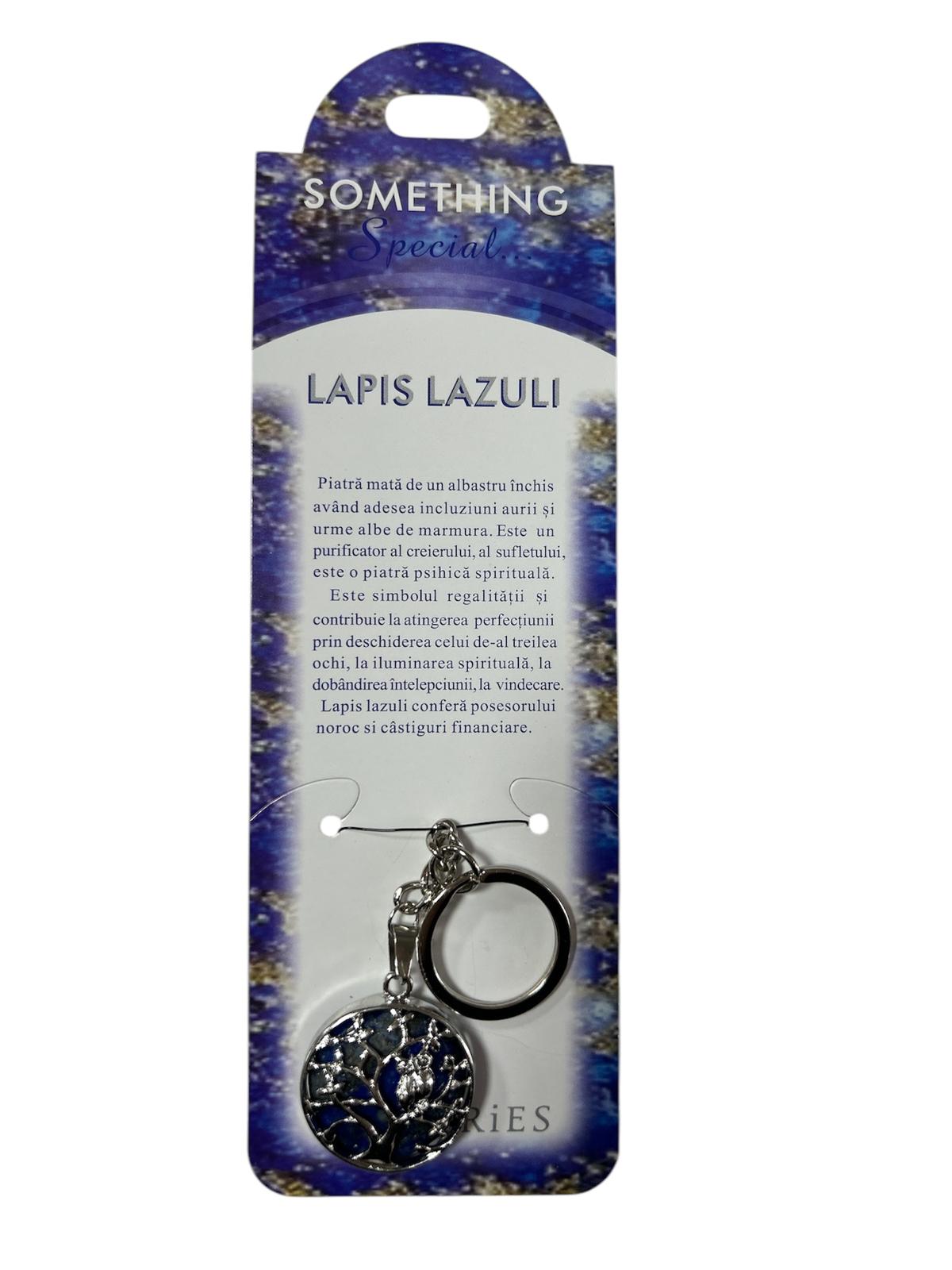 Breloc pom cu bufnita din piatra semipretioasa LAPIS LAZULI pe carton, diametru: 2.5 cm