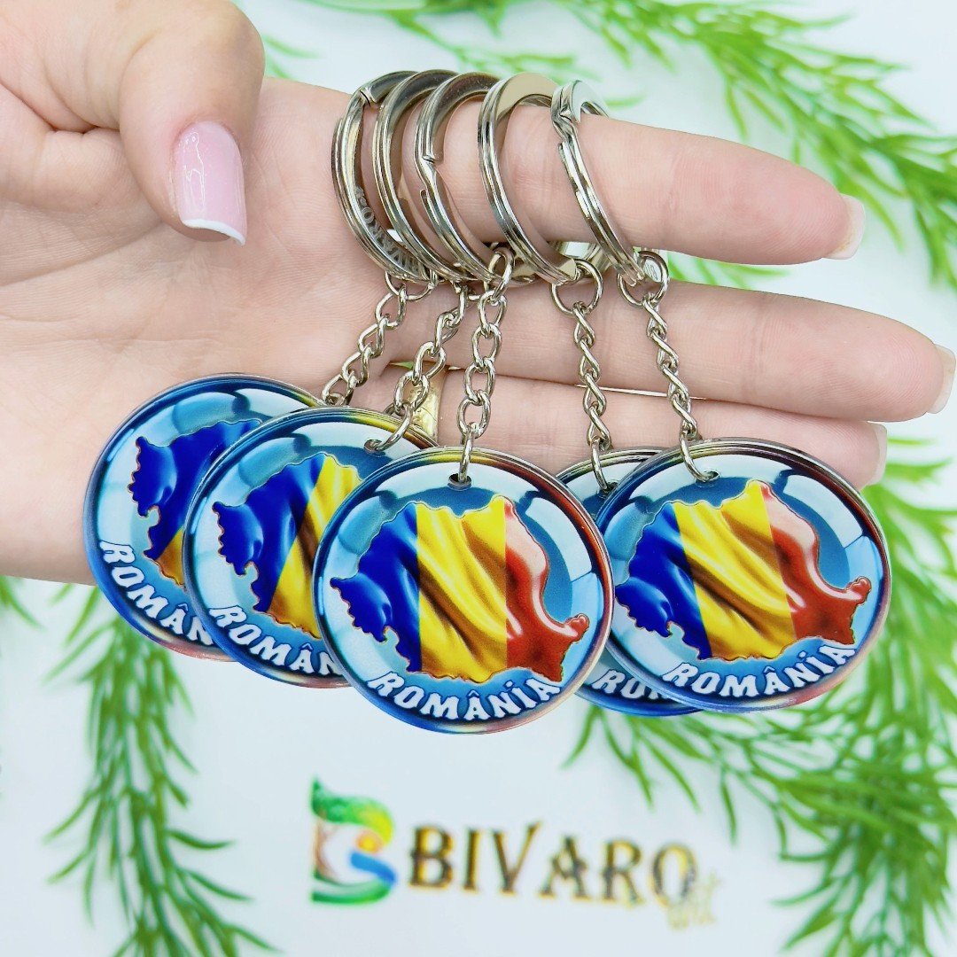 Descoperă brelocurile premium din sticlă acrilică, realizate local în România, ideale pentru revânzare, distribuție sau cadouri corporate. Acest suvenir elegant are un design vibrant cu harta României și steagul național, imprimat UV în interiorul sticlei pentru o rezistență îndelungată la uzură, zgârieturi și umiditate. Cu un diametru de 4.2 cm, brelocul este compact, dar expresiv – perfect pentru comercianți de suveniruri, magazine de profil turistic, evenimente tematice sau companii care doresc produse promoționale autentice, 100% românești. ✔ Detalii produs: Diametru: 4.2 cm Grosime: 3 mm Material: Sticlă acrilică transparentă, ultra rezistentă la impact Tehnologie print: UV in interiorul sticlei (culori vii, durabilitate crescută) Design: Harta României în tricolor, cu text „ROMÂNIA” Prindere: Inel premium metalic Ø 3 cm gravat cu nume brad: Bivaro art, pentru chei sau accesorii Ambalare: Fiecare breloc ambalat individual cu punga zip premium ✔ Ideal pentru: Magazine de suveniruri și artizanat Puncte de vânzare în zone turistice Evenimente tematice, târguri și festivaluri Export pentru comunitățile din diaspora Cadouri corporate cu tematică românească ✔ Beneficii comerciale: Suvenir premium, cu design ușor recognoscibil și apreciat Produs rezistent și compact – ideal pentru transport și expunere Fabricat în România – susține producția locală și identitatea națională Atractiv vizual, ușor de expus și promovat Versatil – poate fi inclus în pachete turistice sau cadouri corporate ✔✔✔ Dezvoltăm și producem aceste suveniruri integral în România. Dacă aveți o idee pentru un model nou, specific zonei dumneavoastră turistice, vă invităm să ne-o trimiteți, o vom transforma în realitate și o vom include în colecția noastră B2B.