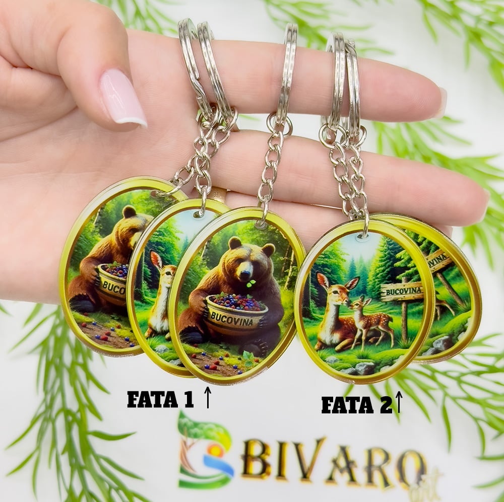 Descoperă brelocurile premium din sticlă acrilică, realizate local în România, ideale pentru revânzare, distribuție sau cadouri corporate. Acest suvenir elegant are un design vibrant cu un Urs și o Căprioara și textul BUCOVINA, imprimat UV în interiorul sticlei pentru o rezistență îndelungată la uzură, zgârieturi și umiditate. Cu un diametru de 4.2 cm, brelocul este compact, dar expresiv – perfect pentru comercianți de suveniruri, magazine de profil turistic, evenimente tematice sau companii care doresc produse promoționale autentice, 100% românești. ✔ Detalii produs: Diametru: 4.2 cm Grosime: 3 mm Material: Sticlă acrilică transparentă, ultra rezistentă la impact Tehnologie print: UV in interiorul sticlei (culori vii, durabilitate crescută) Design: design vibrant cu un Urs și o Căprioara și textul BUCOVINA Prindere: Inel premium metalic Ø 3 cm gravat cu nume brad: Bivaro art, pentru chei sau accesorii Ambalare: Fiecare breloc ambalat individual cu punga zip premium ✔ Ideal pentru: Magazine de suveniruri și artizanat Puncte de vânzare în zone turistice Evenimente tematice, târguri și festivaluri Export pentru comunitățile din diaspora Cadouri corporate cu tematică românească ✔ Beneficii comerciale: Suvenir premium, cu design ușor recognoscibil și apreciat Produs rezistent și compact – ideal pentru transport și expunere Fabricat în România – susține producția locală și identitatea națională Atractiv vizual, ușor de expus și promovat Versatil – poate fi inclus în pachete turistice sau cadouri corporate ✔✔✔ Dezvoltăm și producem aceste suveniruri integral în România. Dacă aveți o idee pentru un model nou, specific zonei dumneavoastră turistice, vă invităm să ne-o trimiteți, o vom transforma în realitate și o vom include în colecția noastră B2B.
