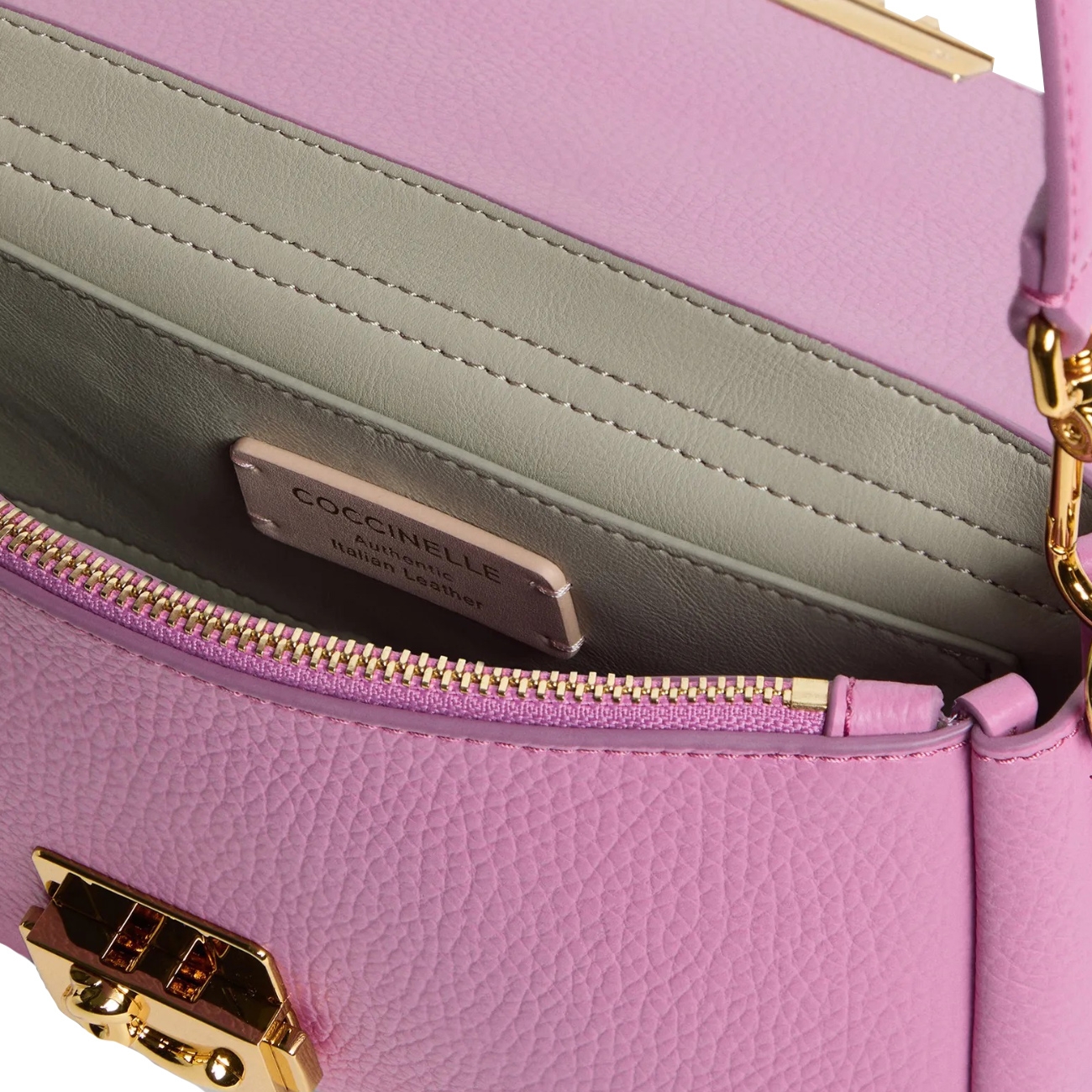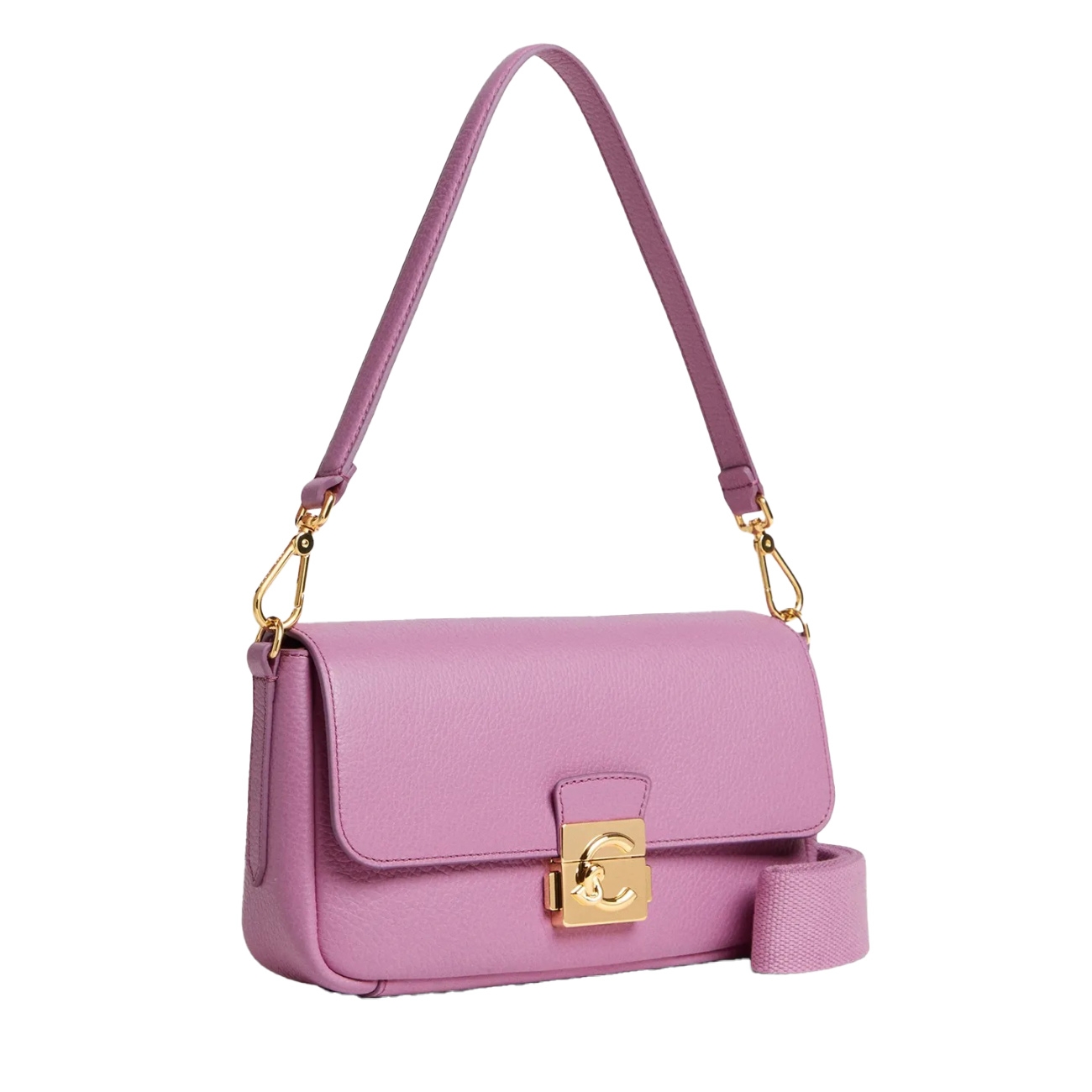 C-Me Lock Medium reinterpretă logo-ul emblematic într-o închidere modernă, cu un design echilibrat și funcțional. Realizată din piele embosată, rezistentă și ușor de întreținut, este potrivită pentru purtare zilnică. Silueta structurată este completată de detalii metalice cu finisaj auriu și de închiderea Tuck Lock cu butoane laterale. Mânerul detașabil și cureaua textilă reglabilă permit purtarea pe umăr sau crossbody, iar interiorul cu două buzunare, dintre care unul cu fermoar, asigură organizare practică.